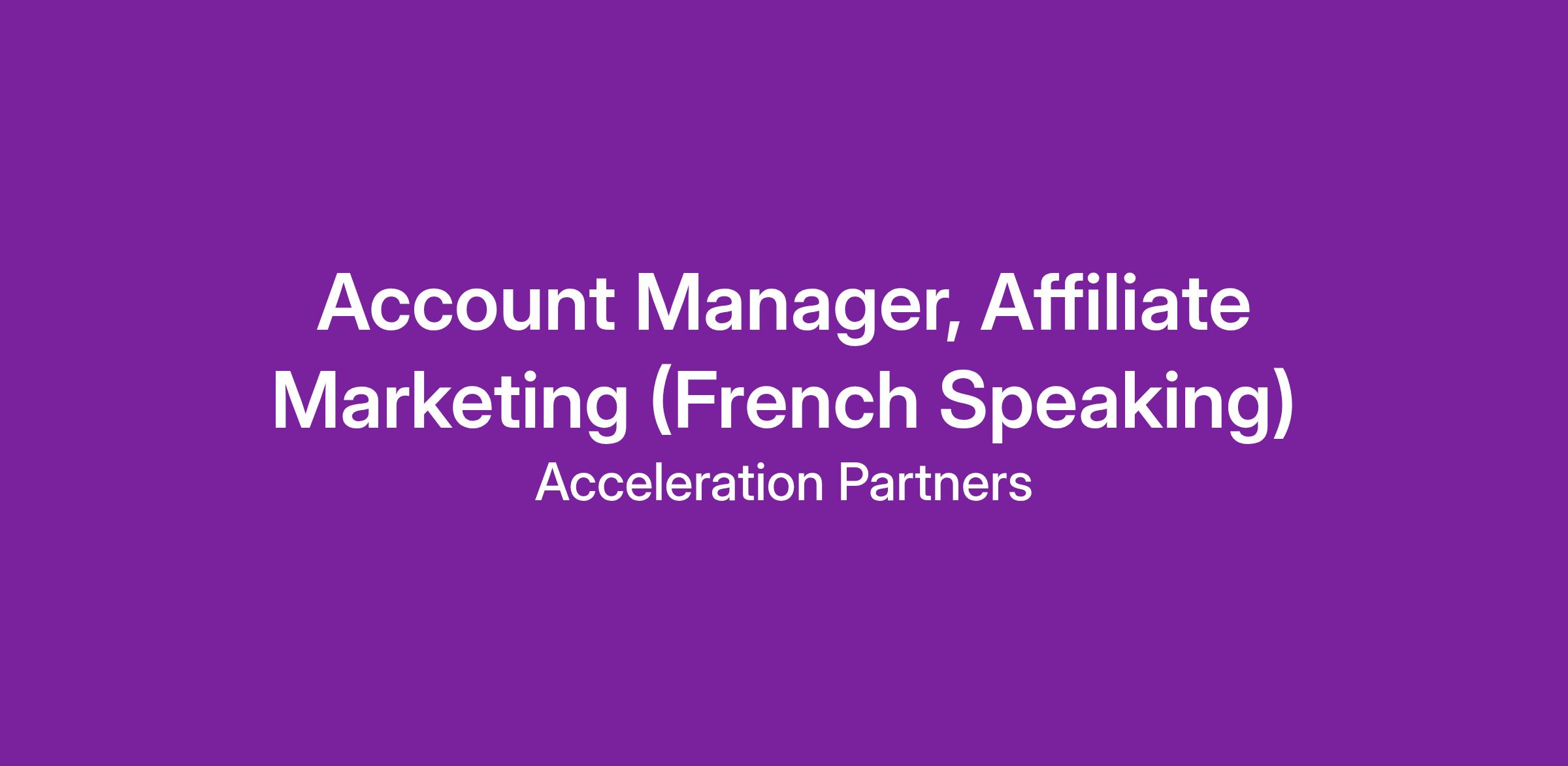 The Account Manager, Affiliate Marketing position is a remote, work-from-home role, as are all positions at Acceleration Partners (a structure central to our culture and vision to change the work/life paradigm). Some travel is required for client meetings, internal meetings, conferences, and other events. Please note: This person must be located in the UK or Germany. This person also must be fluent in French.
