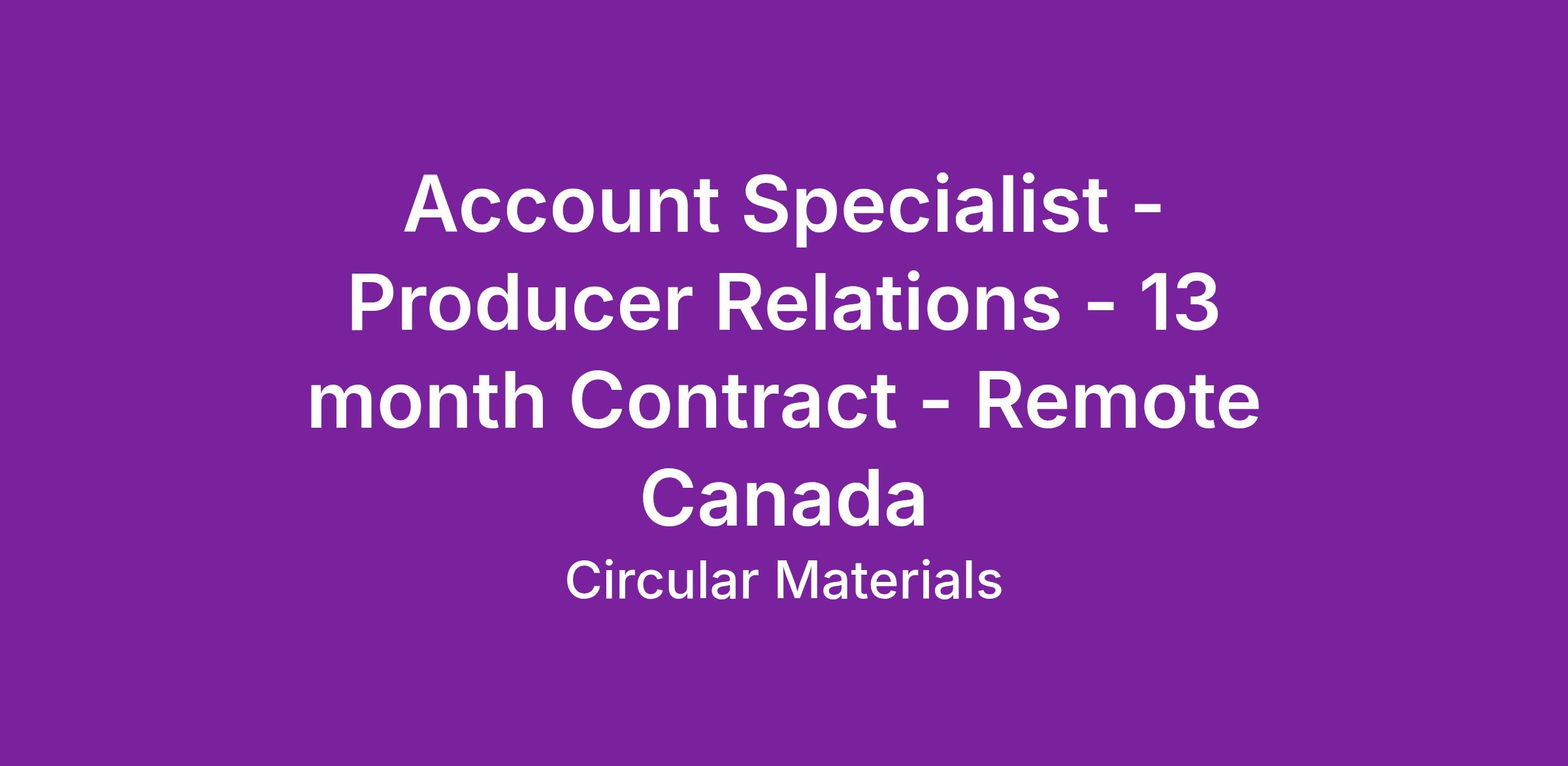 Reporting to Senior Key Account Specialist, the Contract Account Specialist will act as a primary business contact between Producer partners and Circular Materials. This role focuses on supporting Producers as they file their Extended Producer Responsibility/individual producer reports in time for their reporting deadline. As an Account Specialist, you will serve as an ambassador for the organization, interacting with key stakeholders daily, facilitating timely and accurate producer reporting while providing high-quality service.
