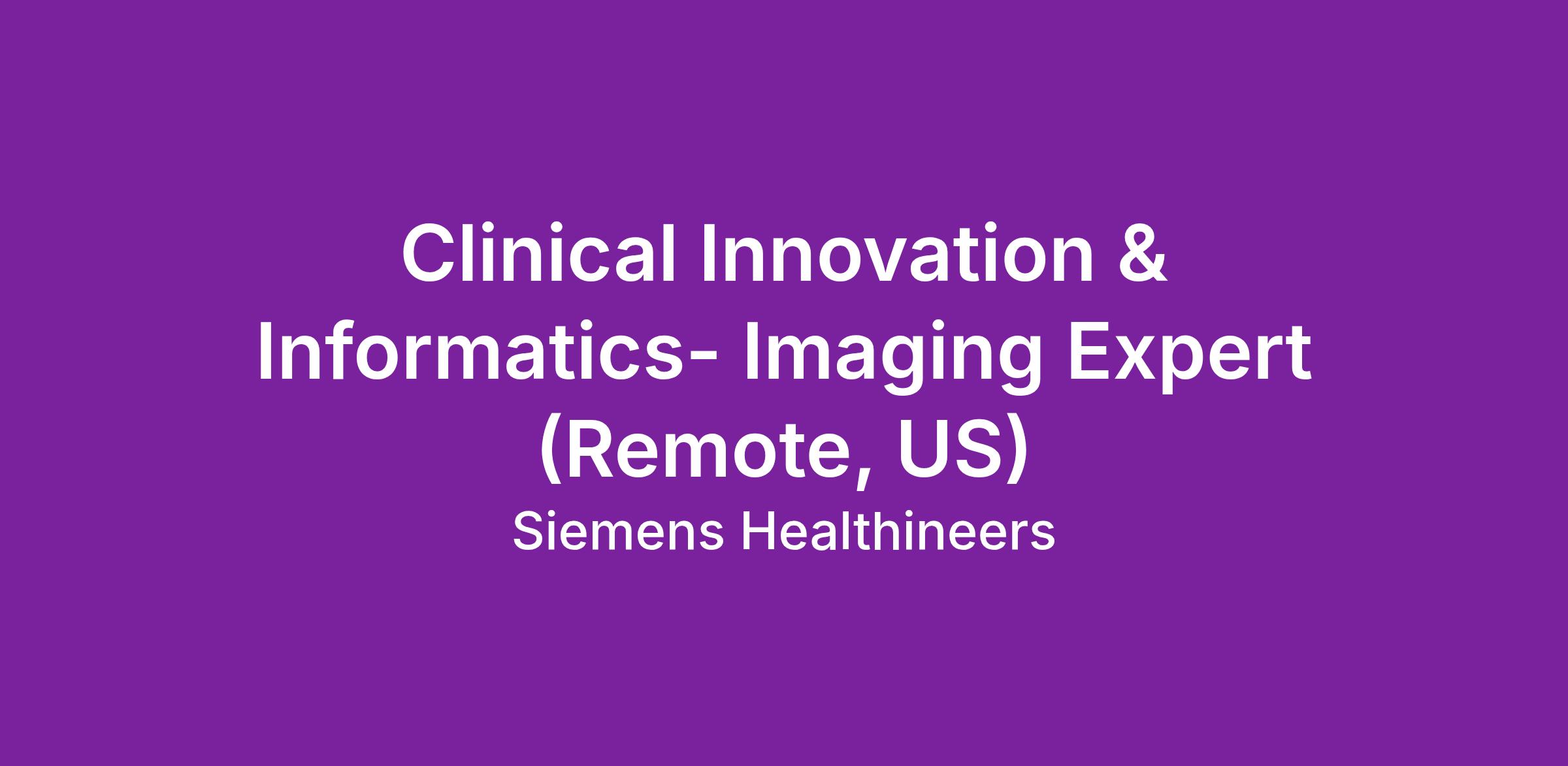 Analyzes and consults on dedicated technologies and the supporting technology process.We offer you a flexible and dynamic environment with opportunities to go beyond your comfort zone in order to grow personally and professionally. Sound interesting? Then come and join our global team as a Clinical Innovation & Informatics, Imaging Expert to advise and assist customers using Siemens portfolio, tools and services, help drive efficiency and effectiveness in health system processes, including improving quality while reducing cost.