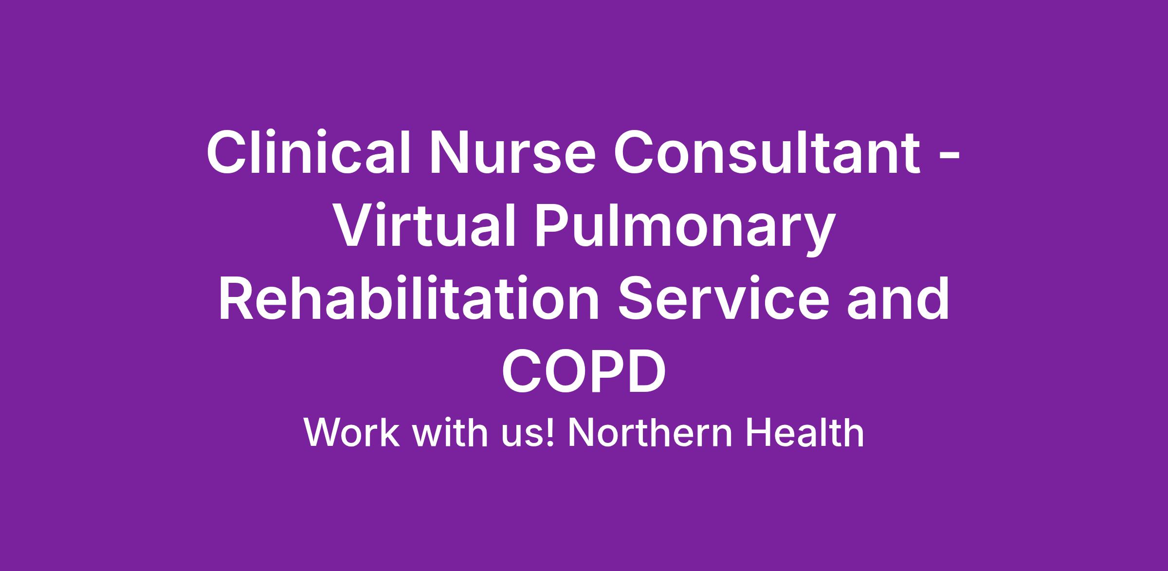 Reference Number: 52994: Clinical Nurse Consultant - Virtual Pulmonary Rehabilitation Service and COPD