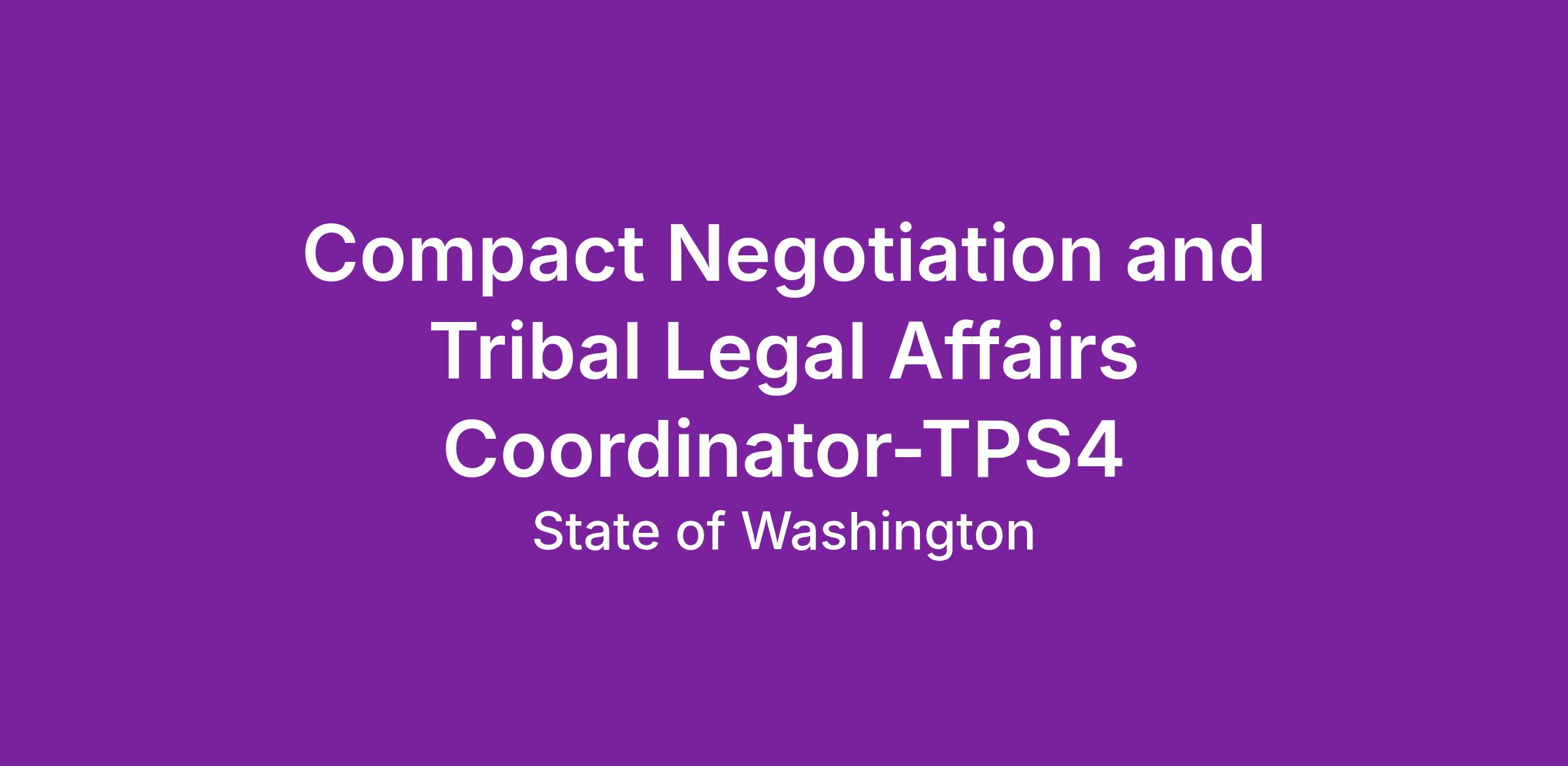 Do you want to make a difference? Are you looking for an opportunity to foster relations between Washington state and tribal governments? Then this might be the opportunity for you. The Department of Revenue's Executive Division/Tribal Partnerships Program is excited to announce an incredible opportunity as a Compact Negotiation and Tribal Legal Affairs Coordinator (TPS4). As a part of this team, your focus is on tribal legal issues and all current and future compacts within the department’s purview.