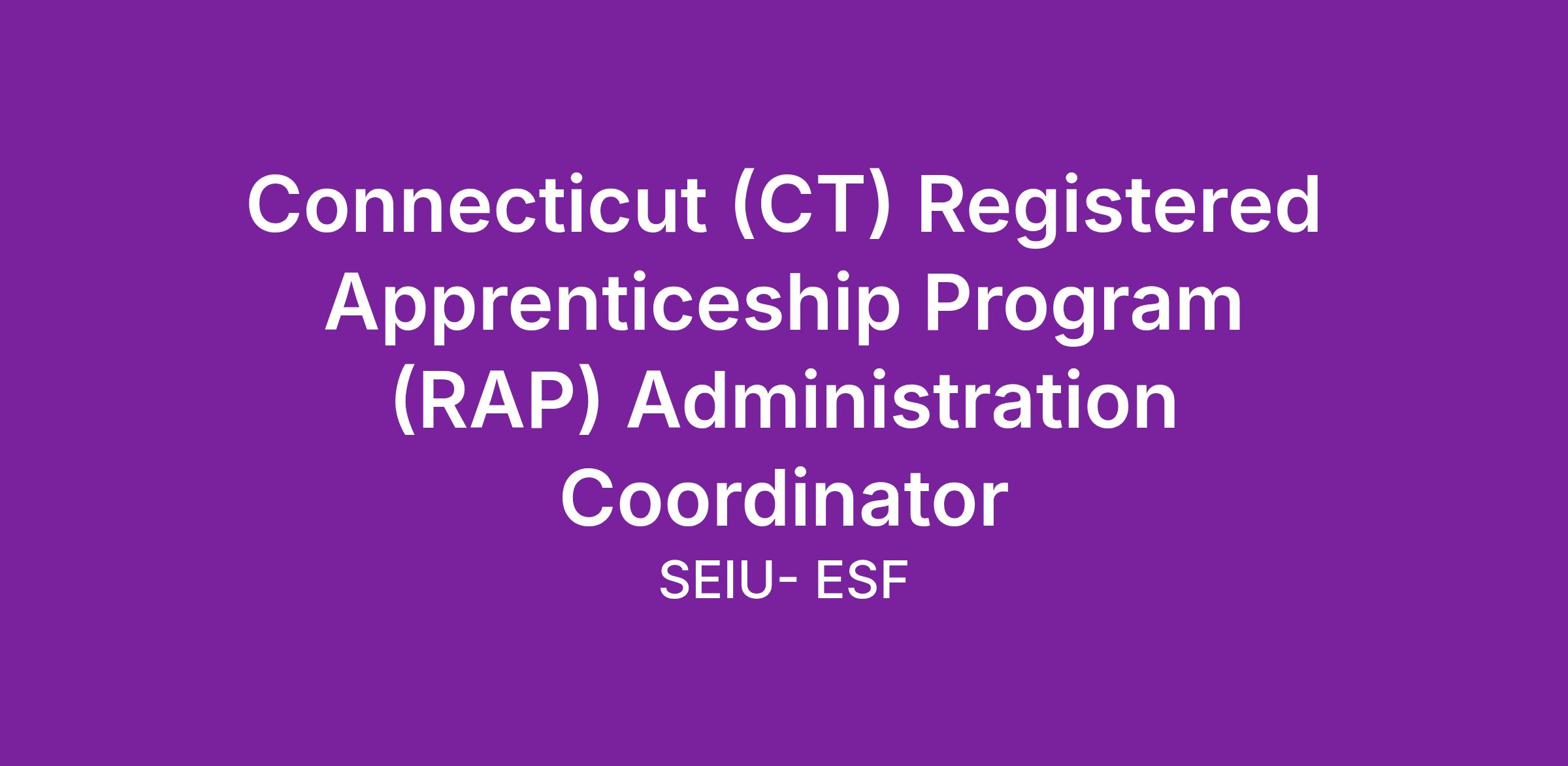 Connecticut (CT) Registered Apprenticeship Program (RAP) Administration Coordinator