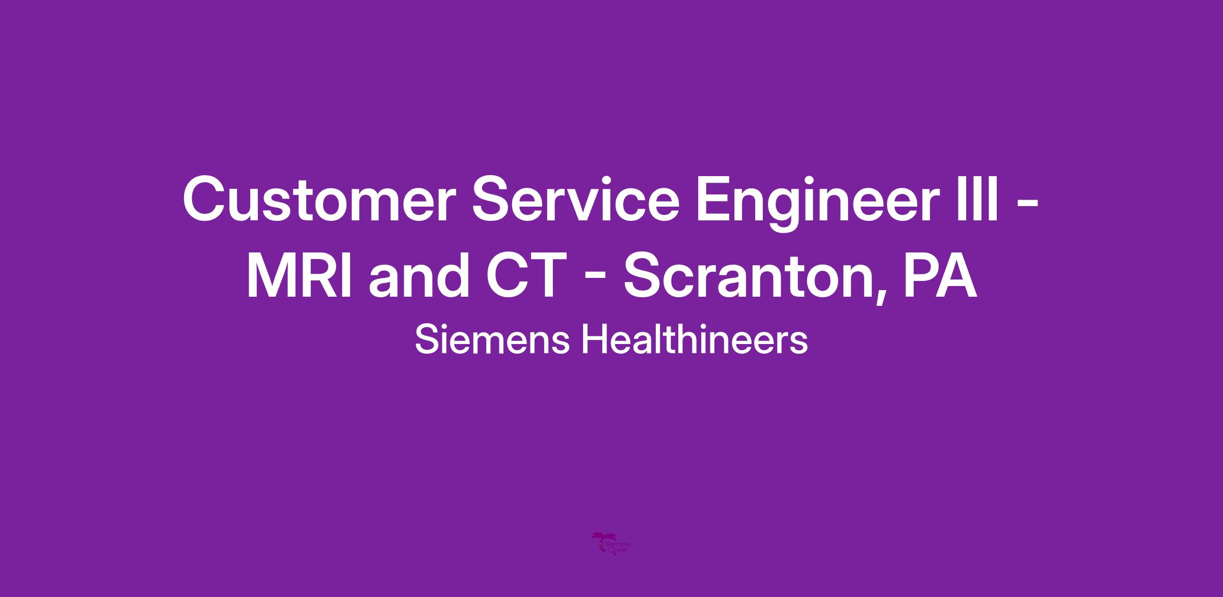 Service Area - North Central and Eastern PAThis is a role well suited to an ambitious professional, looking for the next step in their career. As a Customer Service Engineer III, you will be responsible for: