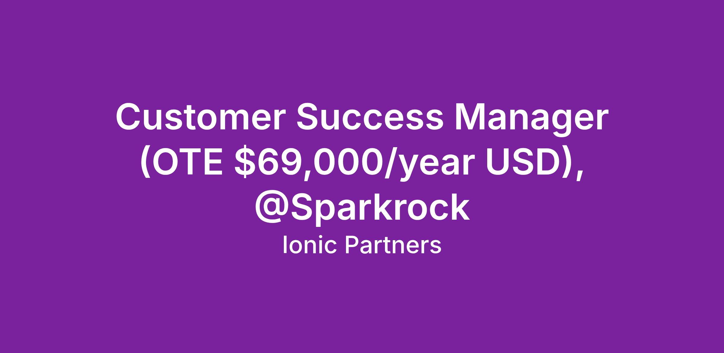 Customer Success Manager (OTE $69,000/year USD), @Sparkrock