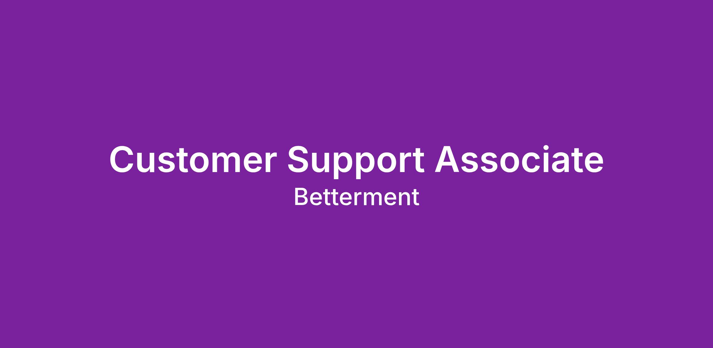 The Customer Support team at Betterment is key to enhancing our customer-focused product, supporting its users, and is relied on by every team in our organization. As a Customer Support Associate, you like working with people, fixing things, and are a master of the art of the analogy. You understand what it means to be a champion of a brand. You are the voice for customers, and relish providing them with that “wow” moment. You understand what it is like to be a customer, and appreciate going above and beyond to delight people and solve their problems. In this role, you will be joining a tight-knit team that is an integral part of the organization.