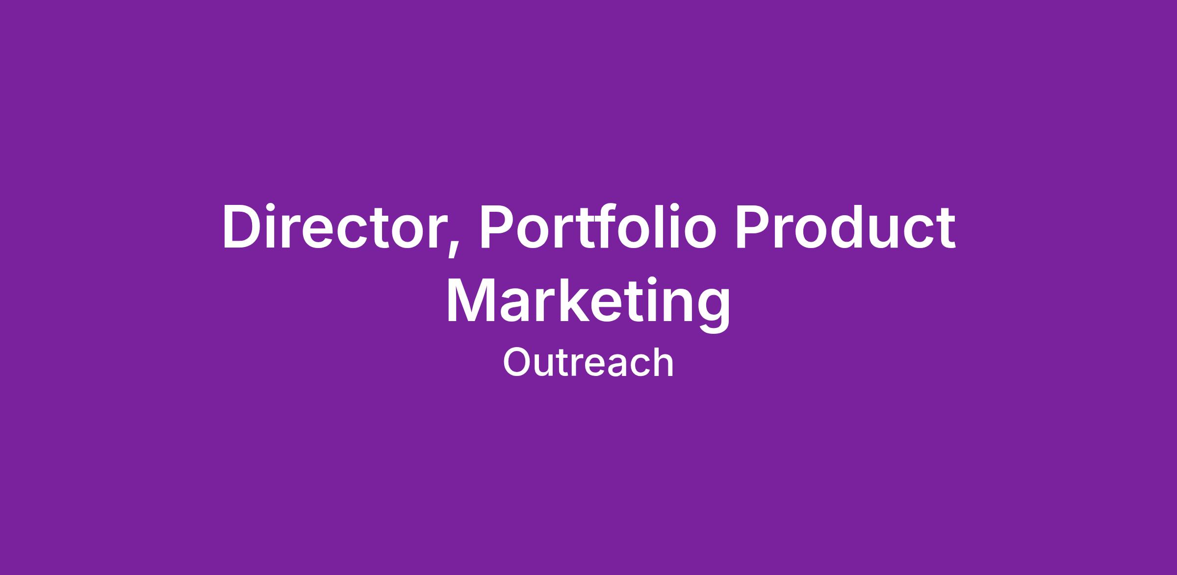Outreach is seeking a Director of Portfolio Product Marketing. This role will report to the VP of Product Marketing and is responsible for driving crisp and compelling positioning and messaging for Outreach’s portfolio. You will work cross-functionally with Demand Generation, Sales, Product Marketing, Sales Enablement, and Revenue Operations to develop effective marketing & sales strategies and tactics to generate awareness and pipeline, accelerate deals, and drive product adoption for our portfolio of products. This person will lead a team of three and work with other Product Marketing, Partners, and Product Management leaders to drive the go-to-market messaging for the portfolio, product launches, and competitive positioning to increase market share, portfolio revenue and adoption.