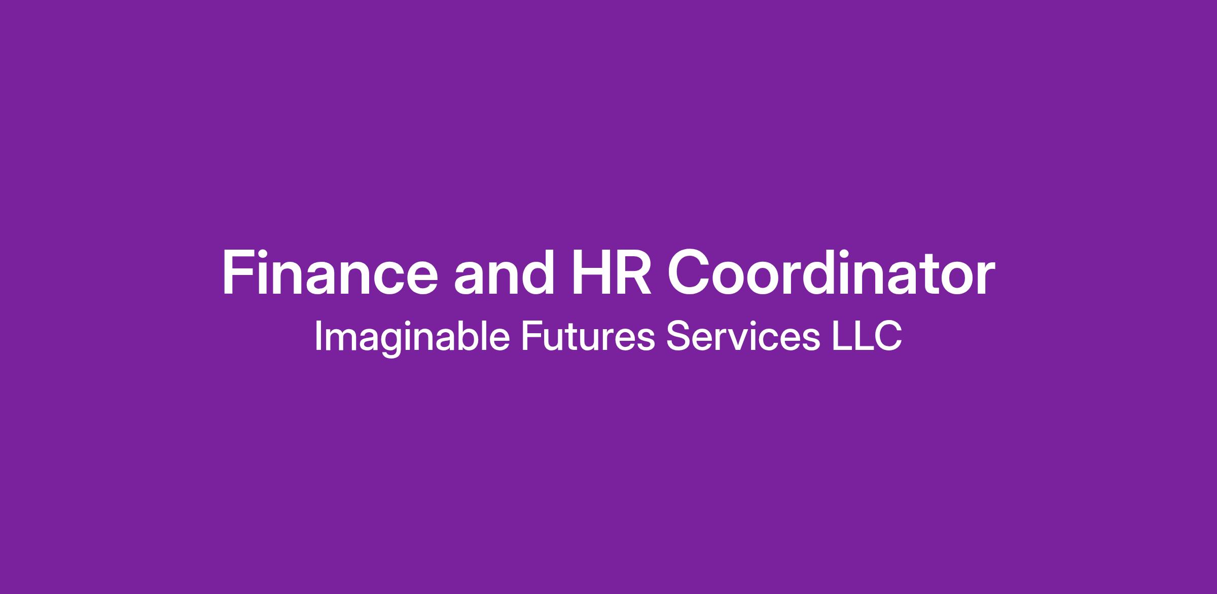 The Global Platform Team at Imaginable Futures is seeking a Finance and HR Coordinator. This position will report to the Global Head of Finance and be responsible for managing or supporting a range of processes across accounting, finance, HR and investment/grant activity. As an important member of the Finance team, the Finance and HR Coordinator will play essential roles in advancing the impact and culture of Imaginable Futures by ensuring smooth operations, supporting grant and investment activities.
