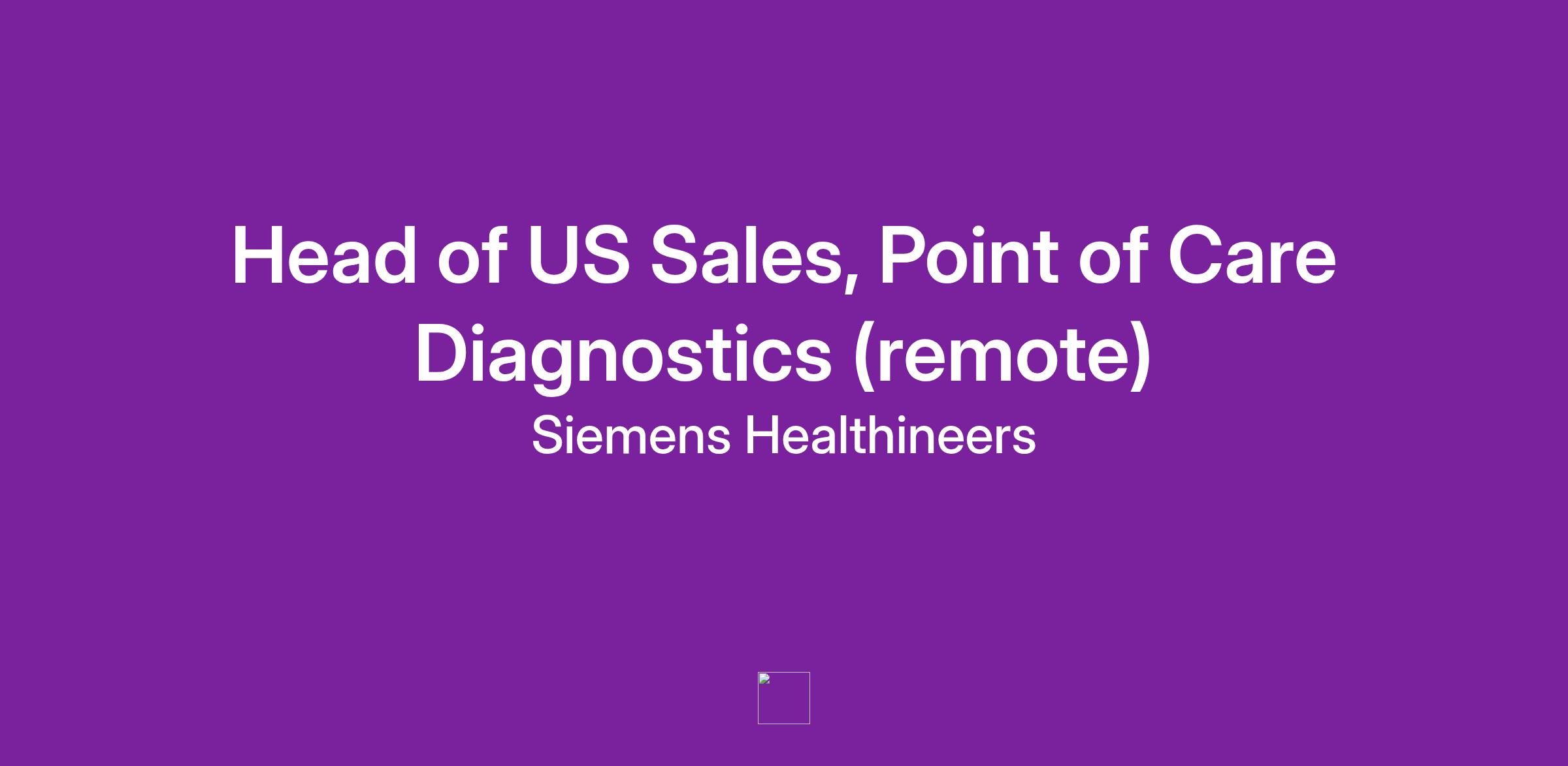 At Siemens Healthineers, we pioneer breakthroughs in healthcare to improve patient outcomes globally. The Head of US Sales for Point of Care Diagnostics is a critical leadership role reporting to the General Manager, USA. This individual will lead and inspire a national team across key care settings to drive growth, expand market share, and elevate customer experience across the Point of Care portfolio. This role demands strategic vision, strong executional leadership, and deep understanding of the US diagnostics and healthcare landscape.