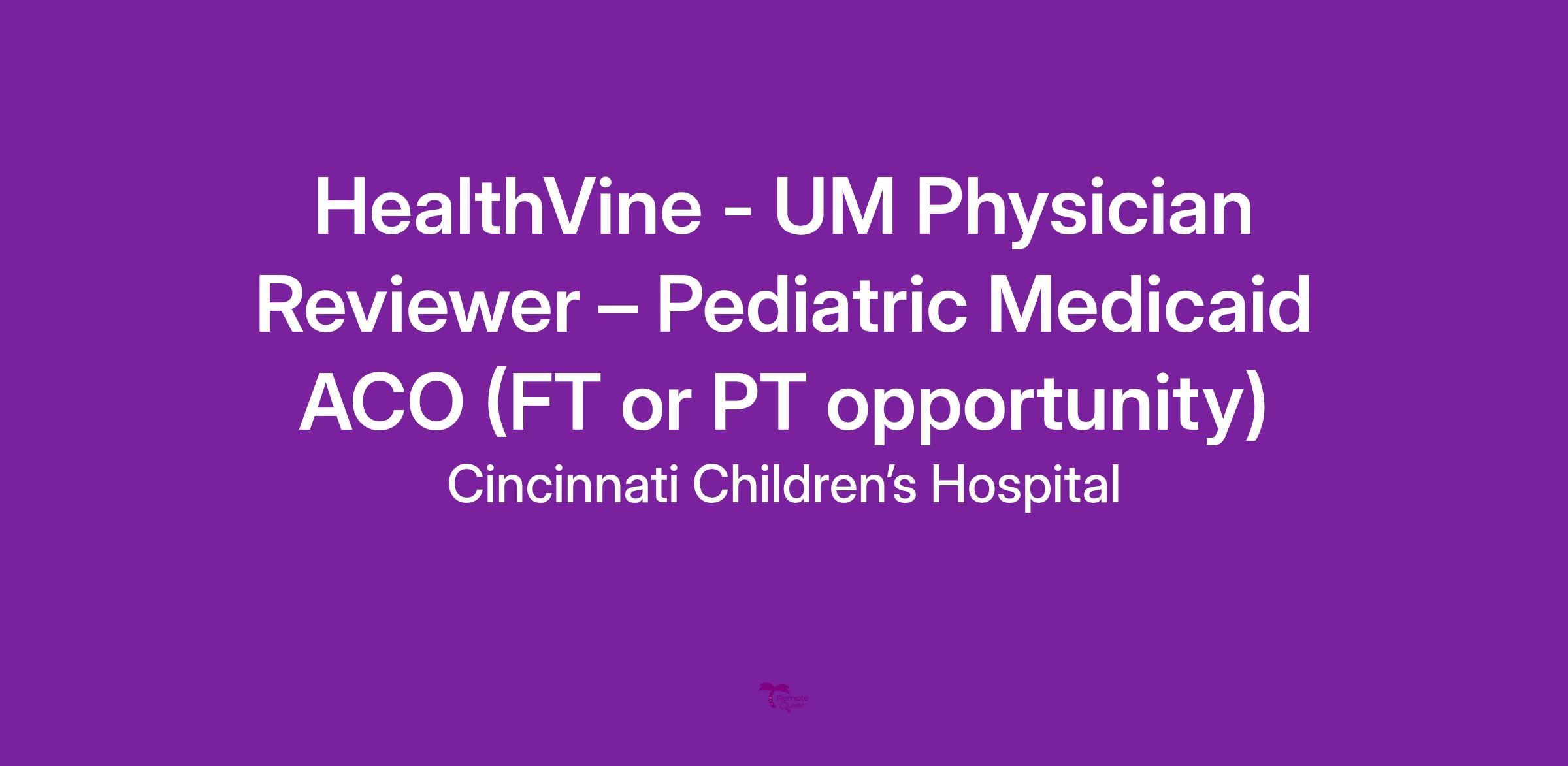 The Utilization Management (UM) Physician Reviewer at Cincinnati Children’s ensures that pediatric Medicaid members receive medically necessary, evidence-based, and cost-effective care. Working within an Accountable Care Organization (ACO) model, this role supports care quality, utilization efficiency, and compliance with Medicaid regulations. The position involves clinical review, interdisciplinary collaboration, and strategic input into population health initiatives.