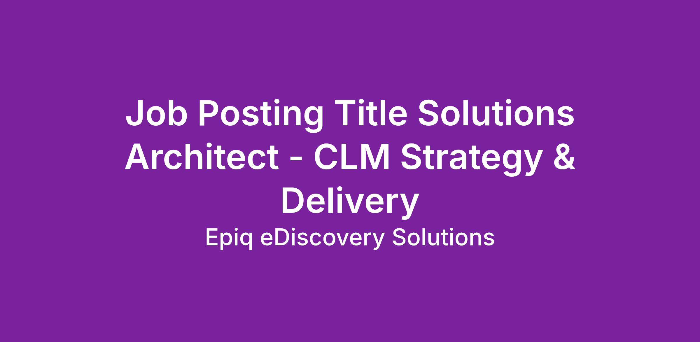 The Solution Architect – CLM Strategy & Delivery plays a pivotal role in leading the design, architecture, and delivery of Contract Lifecycle Management (CLM) solutions. This individual serves as both a senior technical architect and a strategic delivery partner across client engagements.