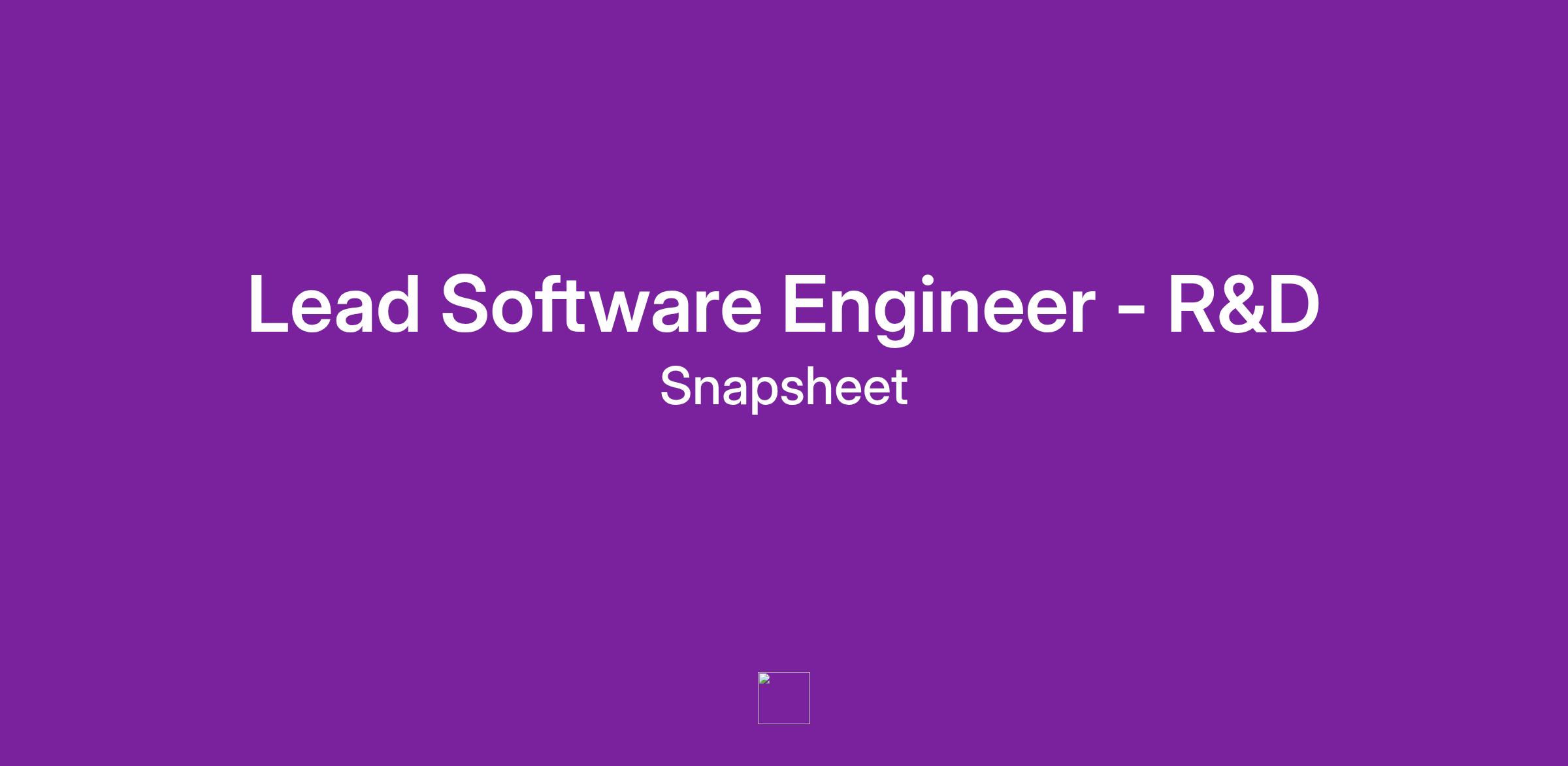 Job Title: Lead Software Engineer - R&D