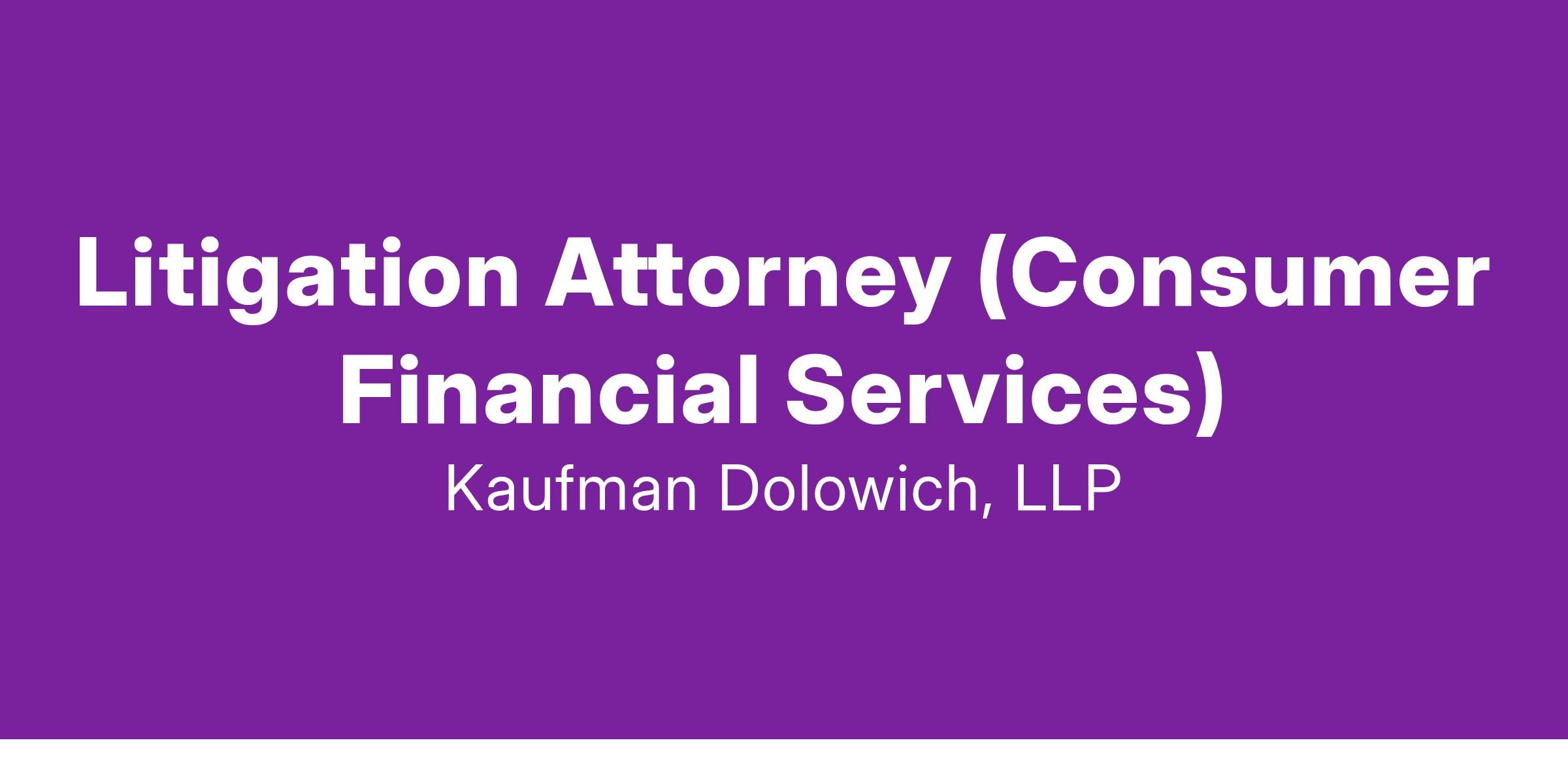 Kaufman Dolowich, an AV-rated® firm designated one of the “Best Companies to Work For” among U.S. law firms by U.S. News & World, is seeking an associate with a minimum of 4 years of defense litigation experience to join its Consumer Financial Services Group. Experience in financial services litigation, regulatory defense, and/or compliance counseling. The candidate would be joining a growing, dynamic firm with more than 200 attorneys nationwide.
