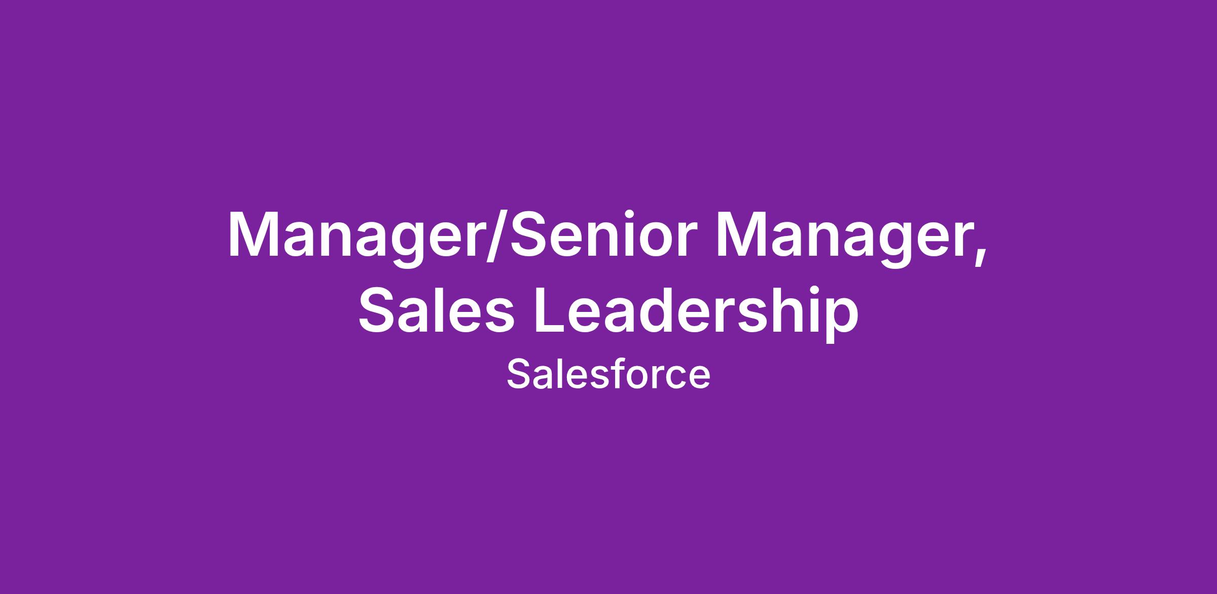 As a 1st or 2nd line Sales Leader you will be leading a team of Business Development Representatives, Business Development Managers, or Account Executives selling the entire Salesforce Customer Success Platform across multiple verticals. We are looking for a sales leader with great energy, leadership, and initiative to drive team performance and sales for our enterprise team. You will formulate and implement a strategy to increase business growth. This role works in partnership with Sales, Marketing, Pre-sales, Partner Alliances, Services & HR, therefore cross-company engagement and orchestration is crucial. The candidate will be a high impact individual capable of driving outstanding business results & first-class employee development. The Sales Leader is fully responsible for developing and leading the team to generate revenue and achieve individual team and organizational quotas. Aligning to the sales strategy, the Sales Leader defines and implements plans for the assigned Accounts to achieve sales objectives.