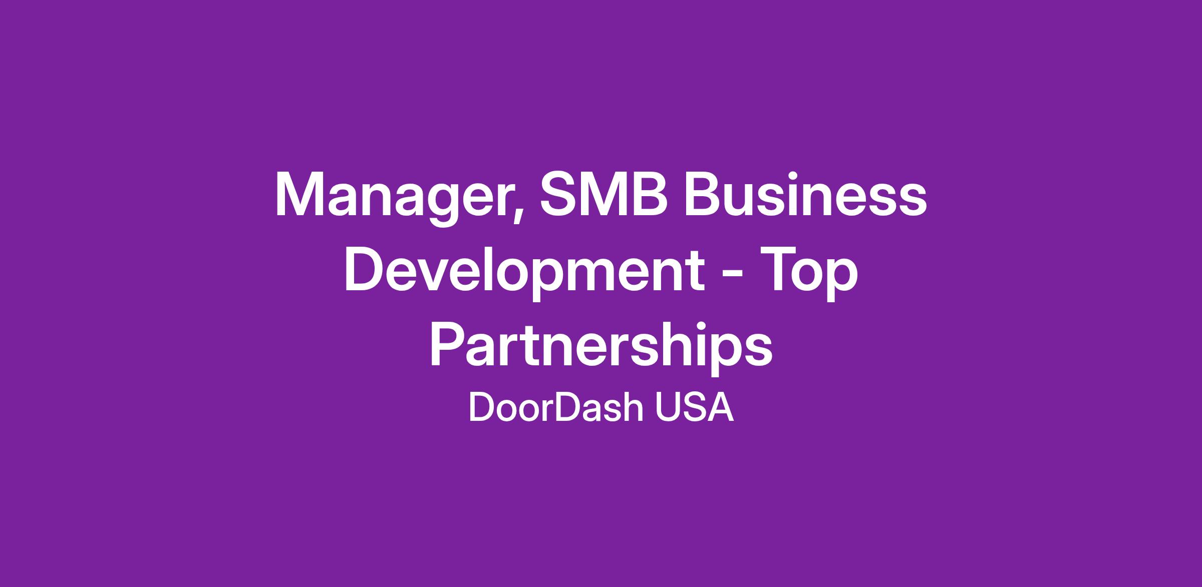 The Top Restaurant Partnerships organization works with DoorDash partners across the United States and Canada to help grow their business on the platform. Within this org, the SMB Business Development team focuses on acquiring, retaining, and expanding partnerships with our highest-value restaurant partners in the small and medium business (SMB) segment.