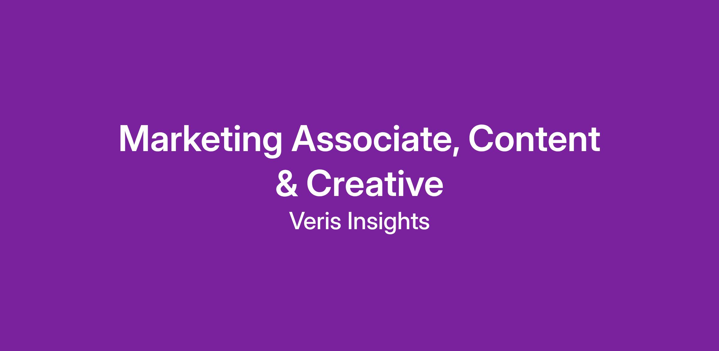 How You’ll Grow: As a Marketing Associate, you’ll take ownership of key content and creative channels while sharpening your executive-level copywriting, multi-channel storytelling, and strategic marketing execution skills. You’ll develop a deep understanding of the recruiting landscape, gain exposure to senior talent leaders, and play a visible role in shaping how Veris Insights shows up in the market.