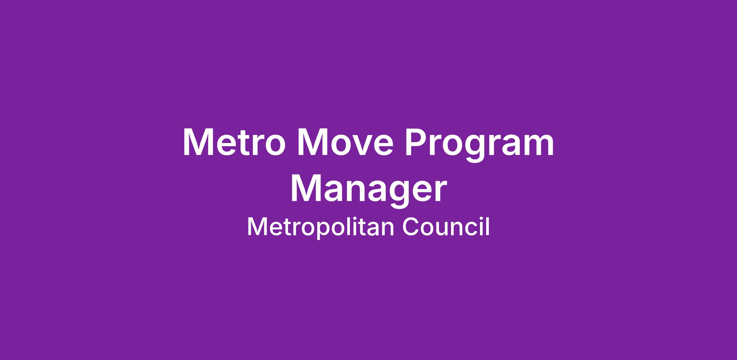 The Metro Move Program Manager will manage the day-to-day responsibilities of Metro Move, a Special Transportation Services (STS) program. Metro Move currently serves individuals participating in Brain Injury (BI), Developmental Disabilities (DD), and Community Access for Disability Inclusion (CADI) waivers administered by the Minnesota Department of Human Services (DHS) with high-quality, door-through-door transit services in much of the seven-county metropolitan region. The Metro Move Program Manager ensures that the contracted service provider is delivering service per the terms of the agreement and is meeting the service quality standards established by the Council. This position will support and enhance collaboration and coordination between persons with disabilities receiving waiver services, their families, allies, county staff and state agencies.