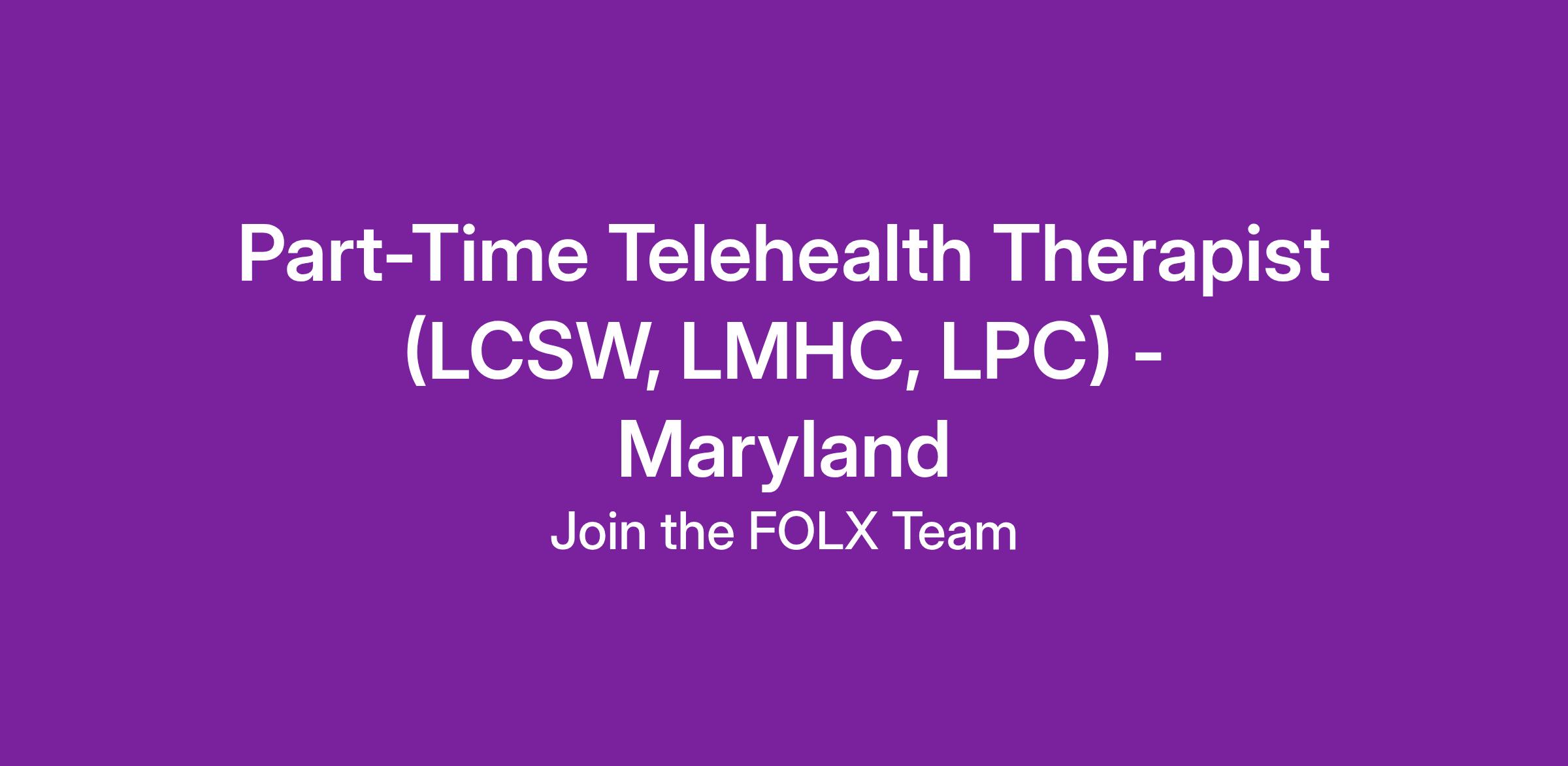 We are currently seeking a Part-Time Telehealth Therapist (LCSW, LMHC, LPC) - Maryland to join our FOLX Behavioral Health Services! As a therapist with FOLX, you will be providing individual therapy to our members (patients) through a telehealth platform.