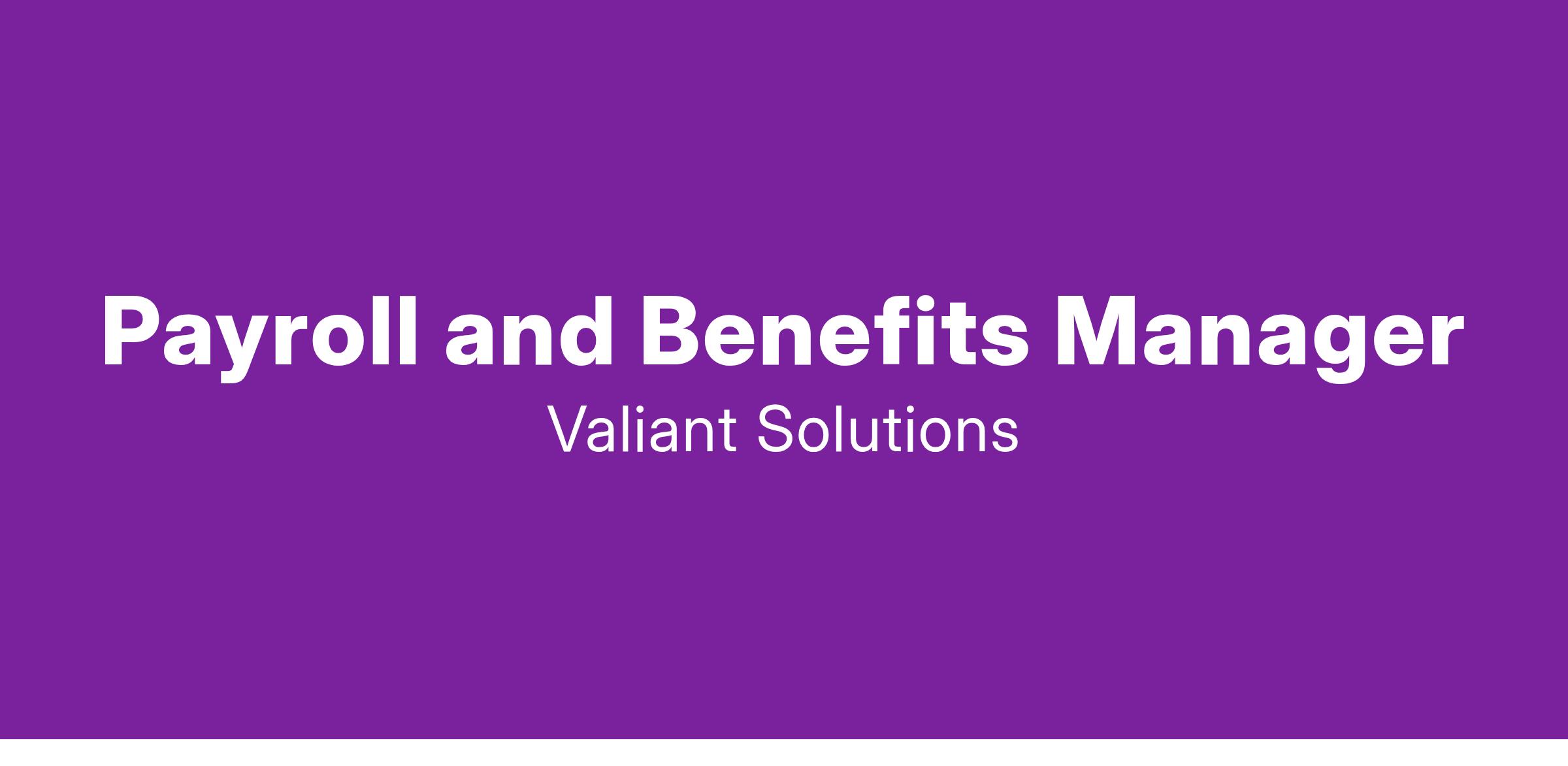 Valiant Solutions is seeking a Payroll and Benefits Manager to join our rapidly growing and innovative team!