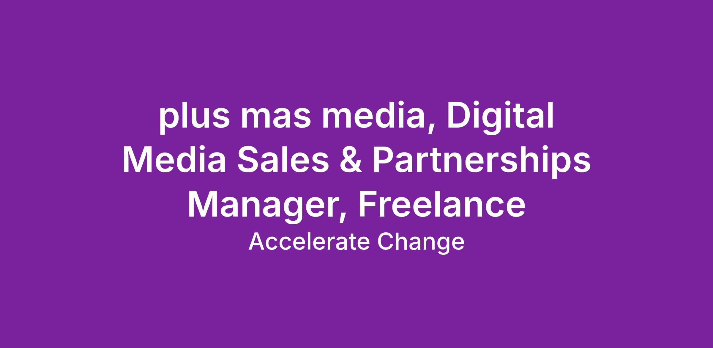 plus mas media, Digital Media Sales & Partnerships Manager, Freelance