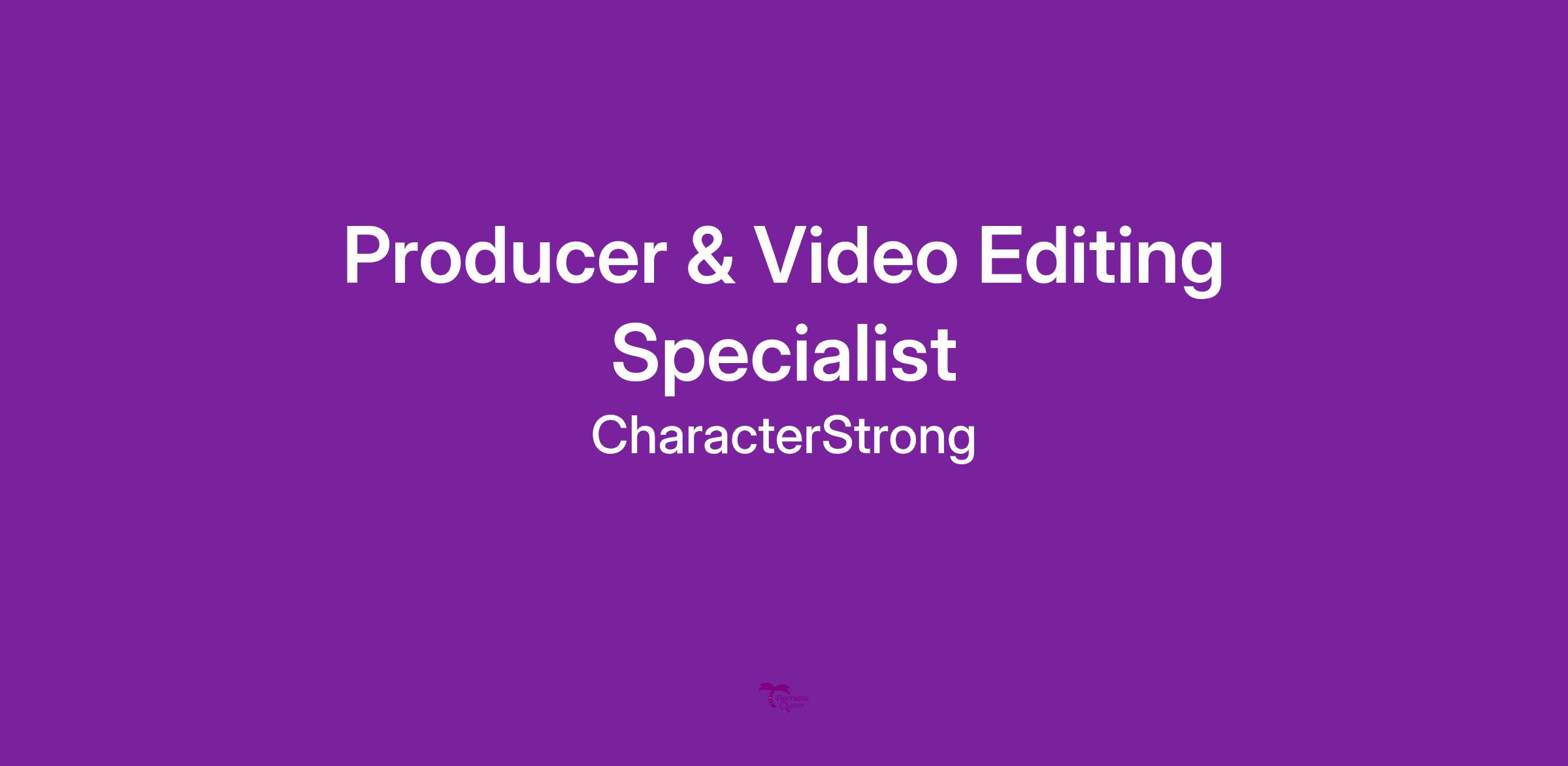 Position Purpose: As a Producer & Video Editing Specialist at CharacterStrong, you will have a hand in every step of the video production process working alongside CharacterStrong’s in-house video team. Your responsibilities will be split between planning, organizing, and overseeing (producing) video shoots, and editing video content. You’ll cross-collaborate with various departments to understand curriculum and marketing objectives, brainstorm video ideas that align with those objectives, and bring video projects to life. This role is ideal for a creative and people-oriented individual with a passion for storytelling through video. As a Producer & Video Editing Specialist, you will play a crucial role in bringing our mission to life by creating engaging and impactful visual content that inspires educators, students, and communities. Your creative expertise will help us convey our message, enhance our training materials, and amplify our reach.