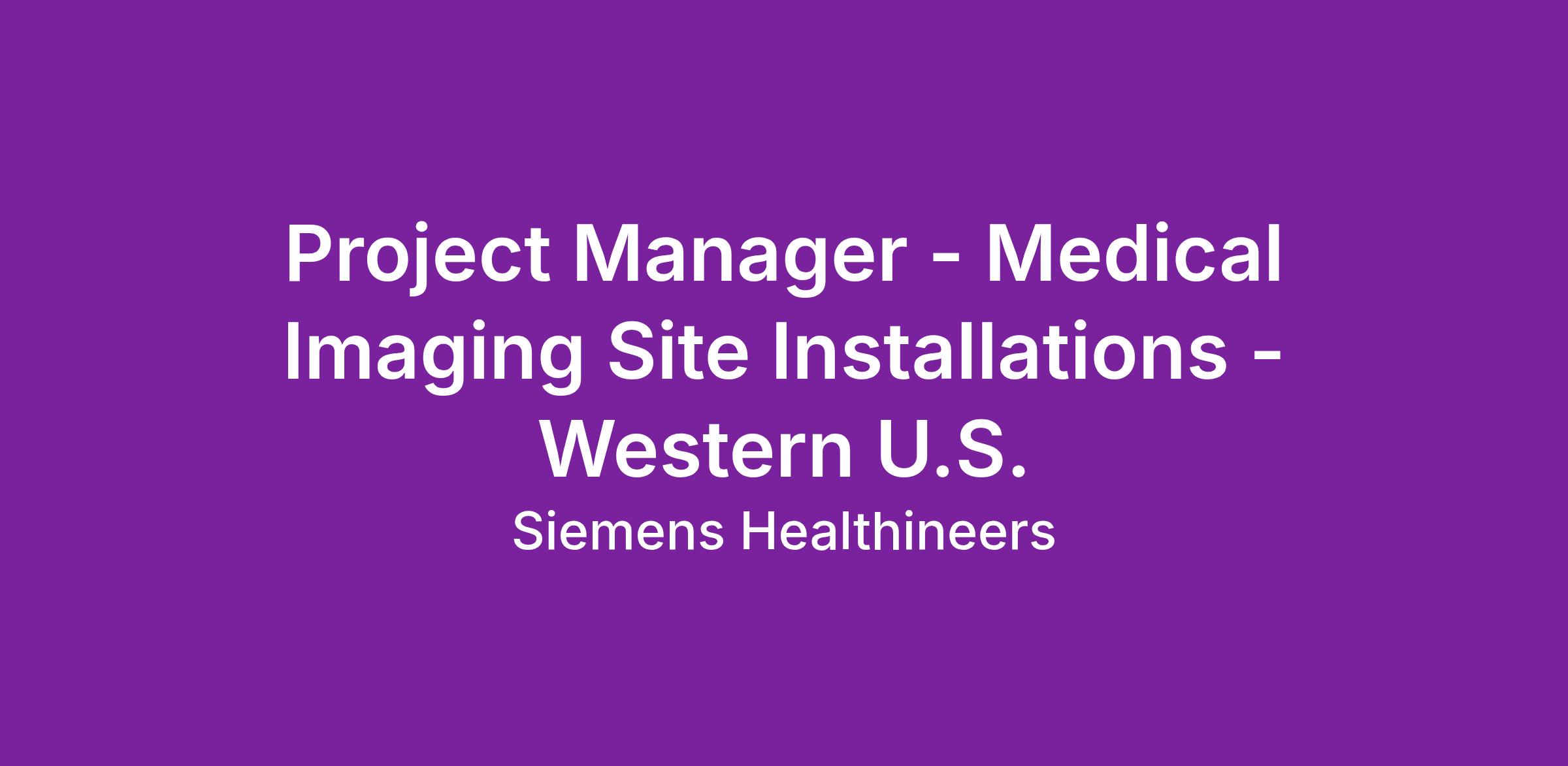 Project Manager - Medical Imaging Site Installations - Western U.S.