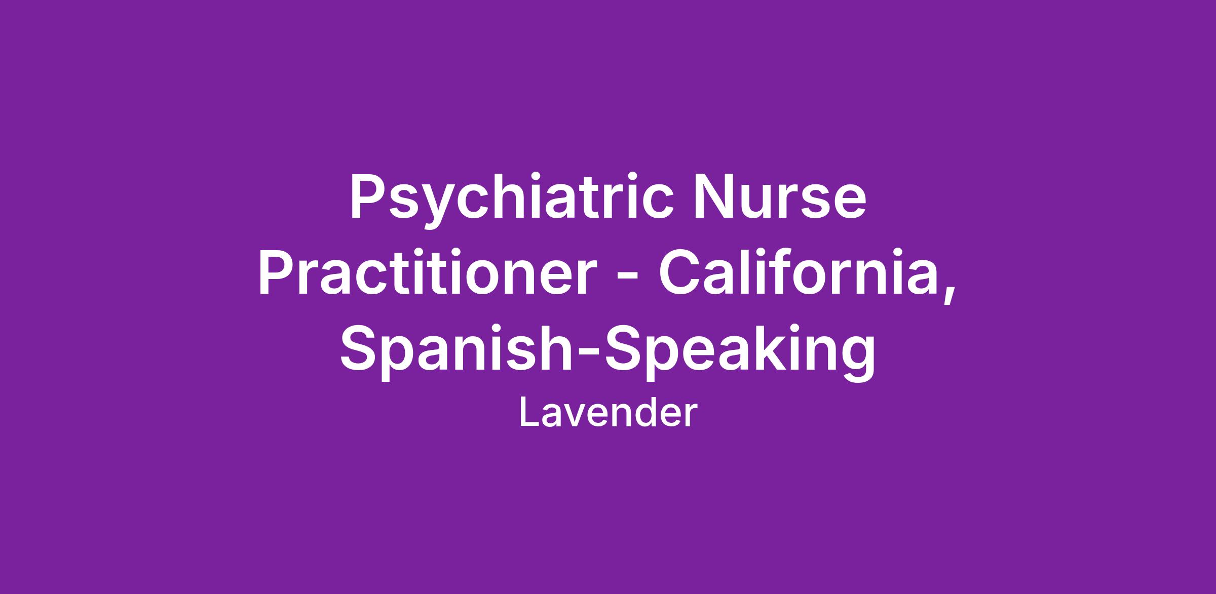 We are seeking both part-time and full-time Spanish-speaking Psychiatric Nurse Practitioners to perform tele-psychiatric visits for clients based in California. If you enjoy working on a team with bright, ambitious advanced practice nurses and are seeking the flexibility and autonomy of private practice, this is an excellent opportunity for you. We offer a competitive 1099 compensation model and a supportive work environment that offers mentorship and training. You can build your own schedule within our operating hours, which are 8 a.m. to 8 p.m. seven days a week. We require a minimum commitment of 16 hours per week