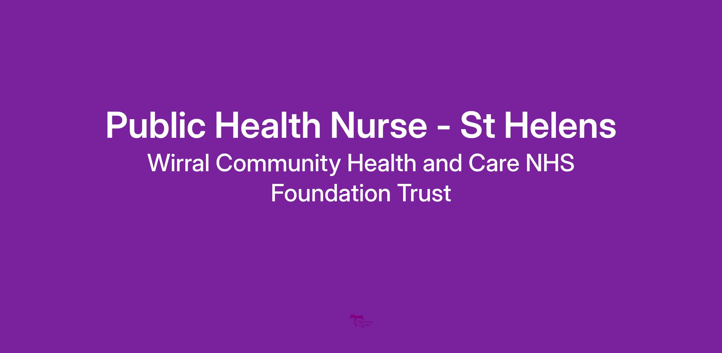 The successful candidate will work as part of the 0-19 service, delivering public health offer across St Helens.