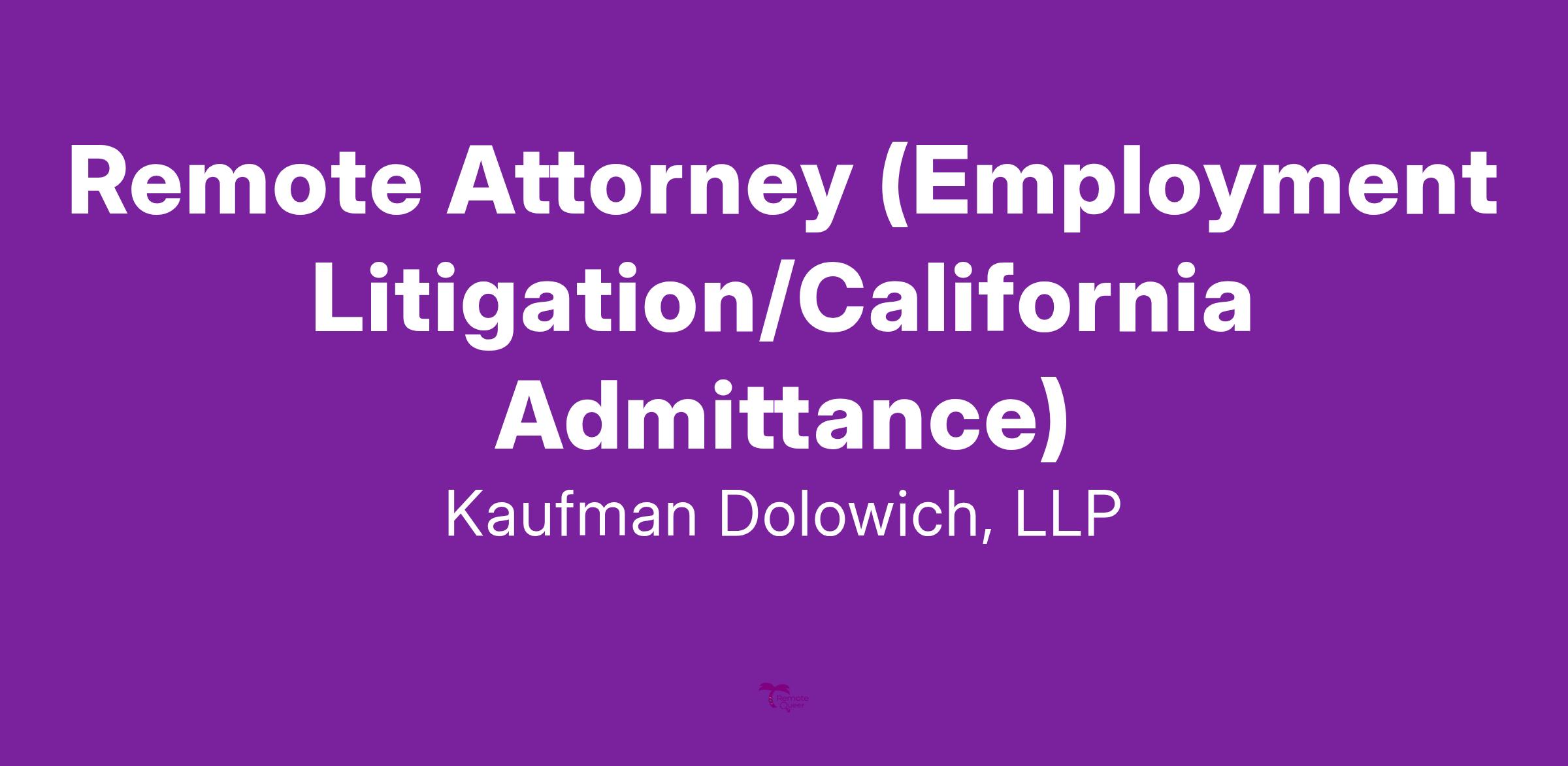 The Los Angeles and Torrance offices of Kaufman Dolowich, an AV-rated® firm designated one of the “Best Companies to Work For” among U.S. law firms by U.S. News & World Report, is seeking an Employment Litigation Attorney with a minimum of 5 years of employment litigation experience. The candidate would be joining a growing, dynamic firm with more than 200 attorneys nationwide.