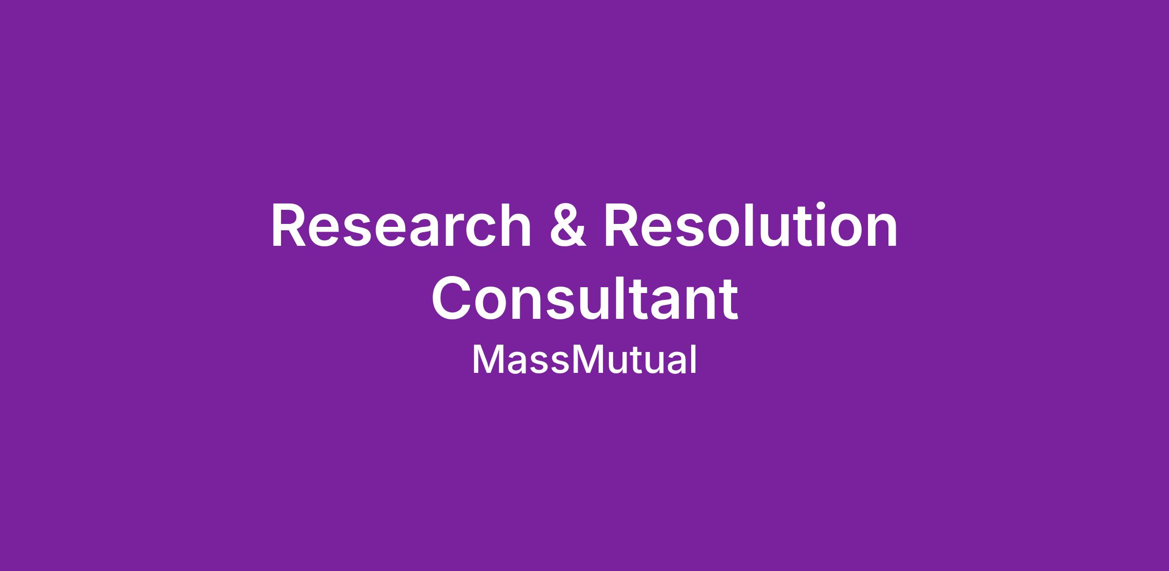 We’re looking for a detail oriented, self-motivated individual to join our growing team as a Research & Resolution Consultant. As a Research & Resolution Consultant you’ll be responsible for managing a workload of different cases that will require research and problem solving to determine if the client was harmed by the error and what course of action can be taken to make the client whole. We support many organizations across the firm as well as other areas in MassMutual that will require effective communication as some cases will involve upper level management both at the Home Office as well as in the field. This is a fast-paced environment as we deal with time sensitive issues that require immediate attention.