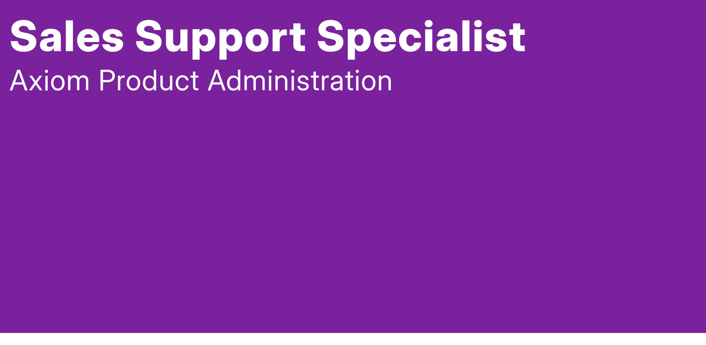 Position Overview: Axiom is seeking an energetic and organized Sales Support Specialist to support our Sales team. This individual will assist with documentation, interdepartmental communications, and customer service to ensure an efficient sales process.