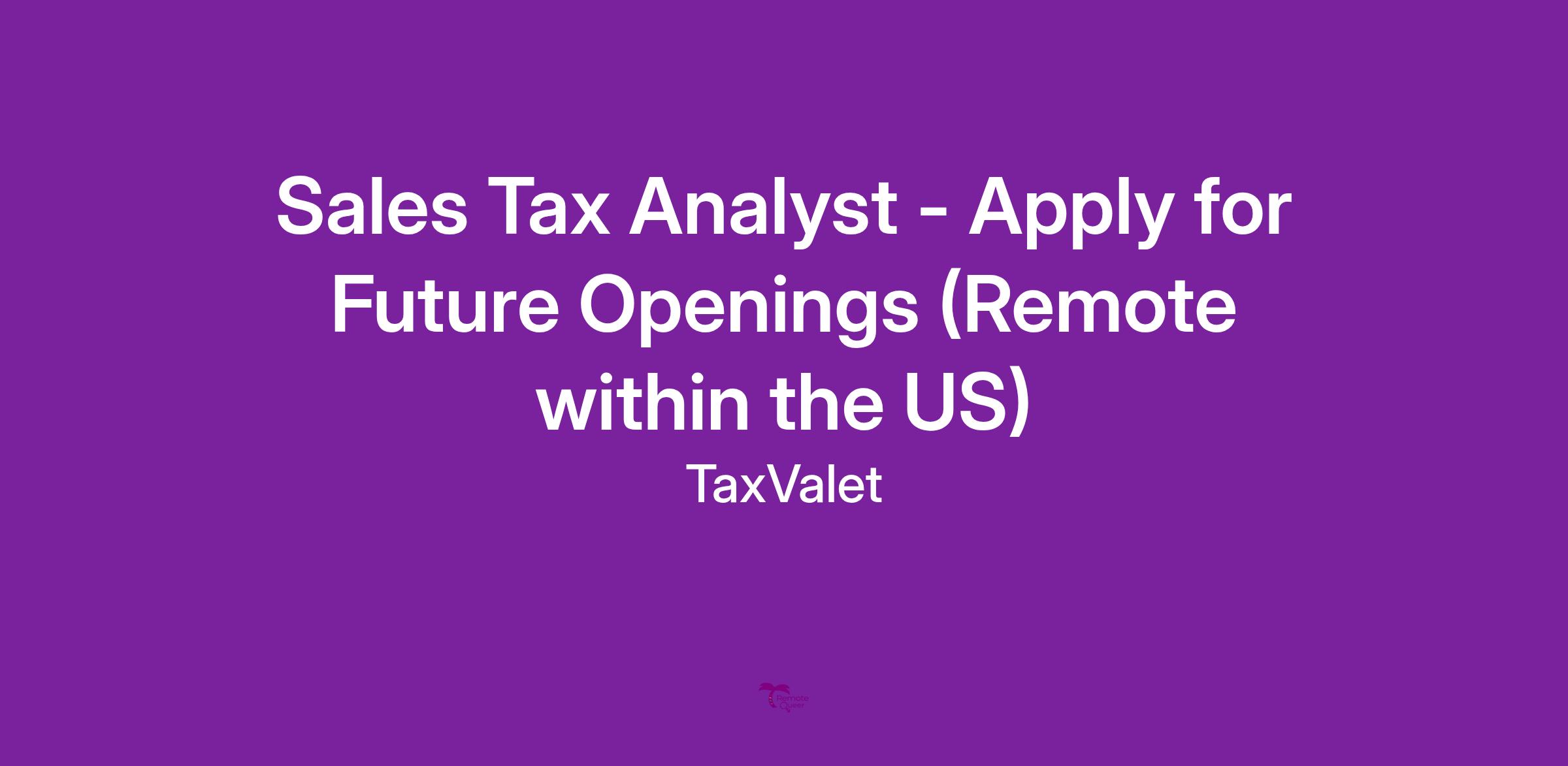 - Sales tax experience is a plus, but not required.