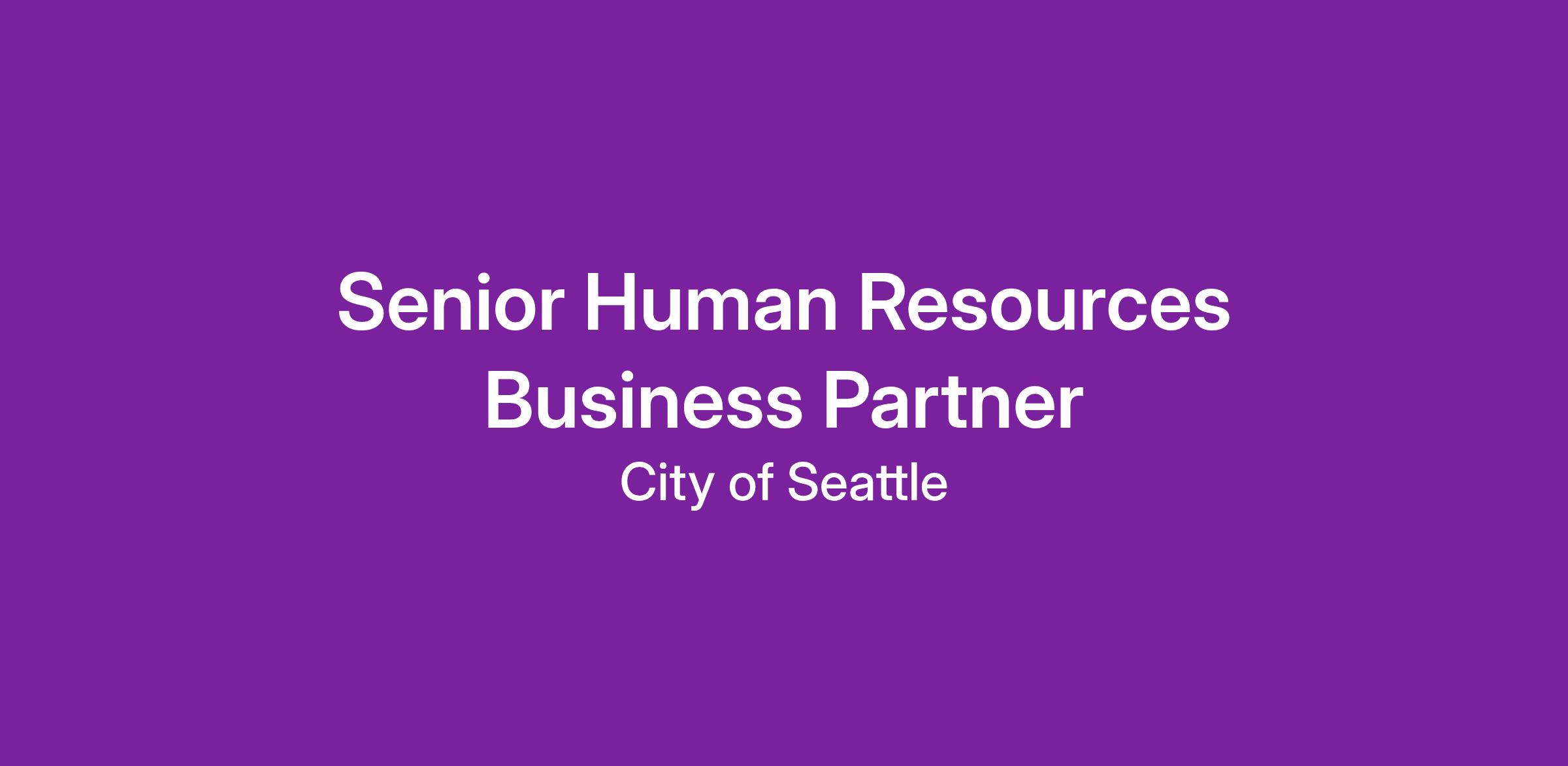 The City of Seattle believes in the diversity of our people, ideas, and experiences and is committed to building an inclusive culture that is representative of the community we serve. Seattle Human Resources (SHR) provides services for our diverse workforce to ensure employees are recruited equitably, managed fairly, are well-trained, supported, and assigned job duties to accomplish City’s goals. The Service Delivery team supports 700+ employees in 20 unique departments and executive offices. We have an opportunity for a Senior HR Business Partner to join our team.