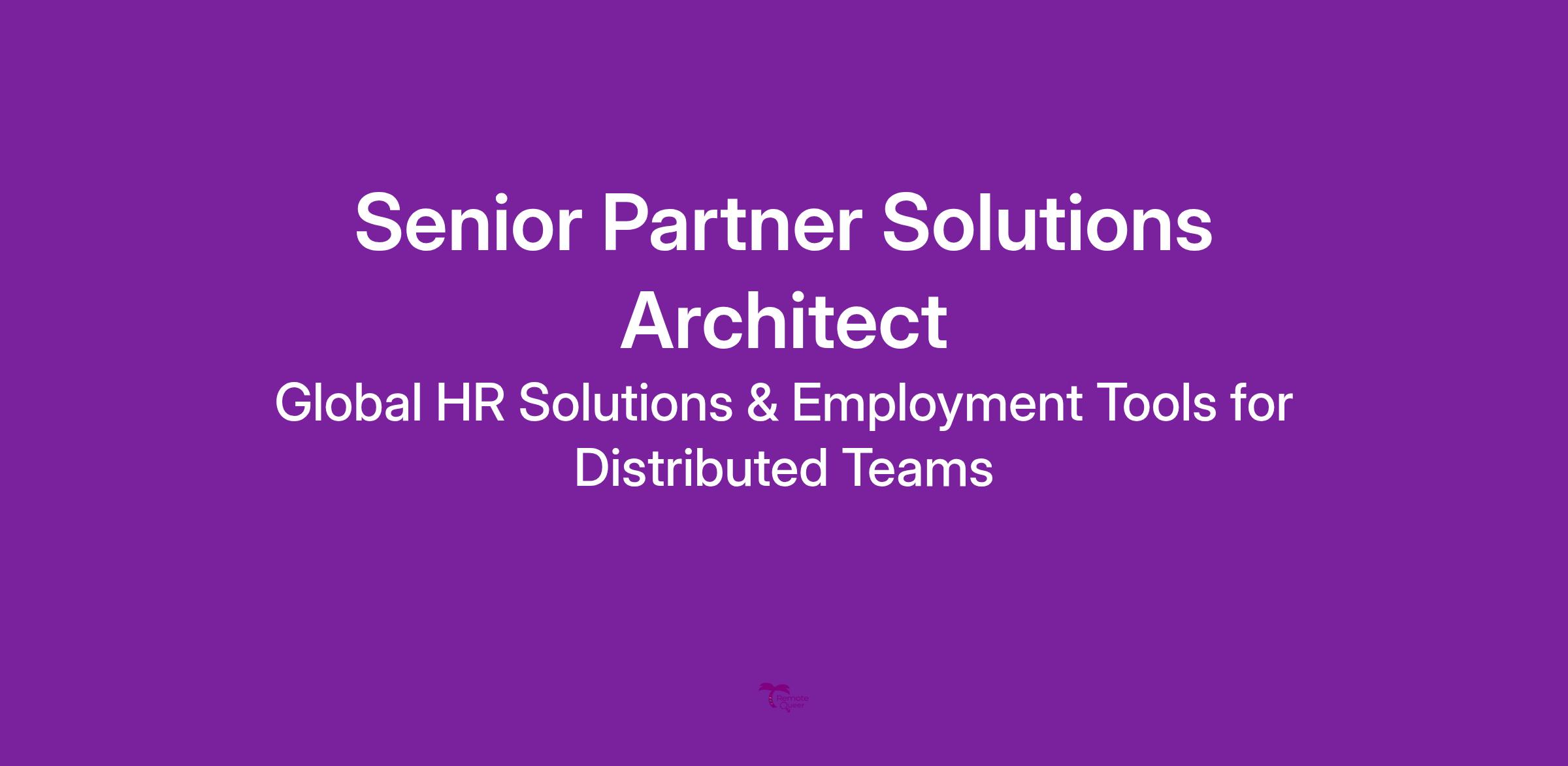 The Senior Partner Solutions Architect is a strategic technical leader responsible for driving the successful integration of partners onto the Remote platform. This role acts as the primary technical bridge between our products and our partners' needs, owning the technical relationship from pre-sales qualification through to post-sales implementation and scaling. The ideal candidate will combine deep API and integration expertise with strong consultative skills to design and deliver high-value solutions that accelerate partner-driven revenue and expand Remote’s ecosystem.