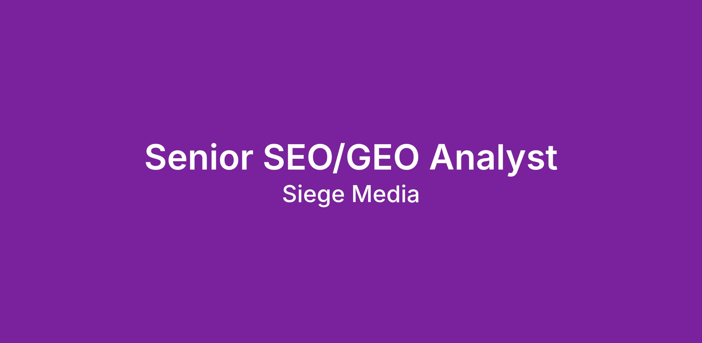 Siege Media is a growing and remote-first organic growth agency! We are nationally recognized on Inc.’s Best Workplaces list and Inc. 5000 list, highlighting the 5000 fastest-growing private companies. Interested in joining the Siege team? We currently have a spot open for a talented Senior SEO/GEO Analyst to help us continue to deliver great content for our world-class clients.