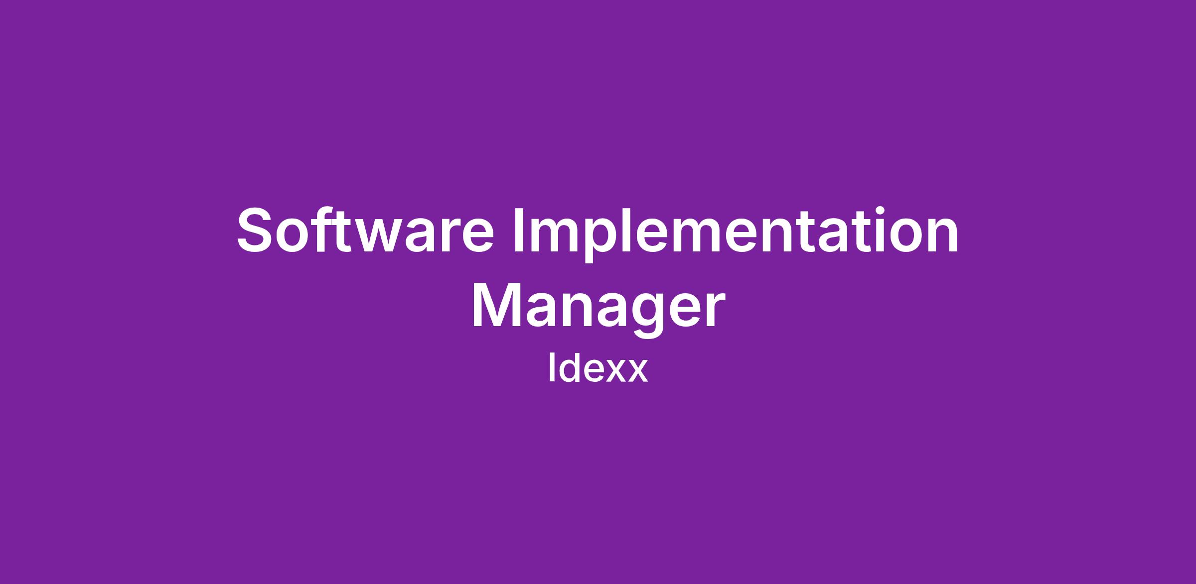 IDEXX is hiring for a Software Implementation Manager. In this role, you will be responsible for leading a team of Veterinary Software Specialists who implement our premium software product, ezyVet, to animal hospitals. This people leader will be responsible for fostering a high-performing team, retain top talent through building a world-class culture, ensure members are educated on product and workflow best practices, and encourage employees to perform their best in helping our customers achieve their desired outcomes while onboarding our software. The leader will work within the functional leadership team to provide continuous process improvement increasing efficiency and positive outcomes for the employee, customer and company.