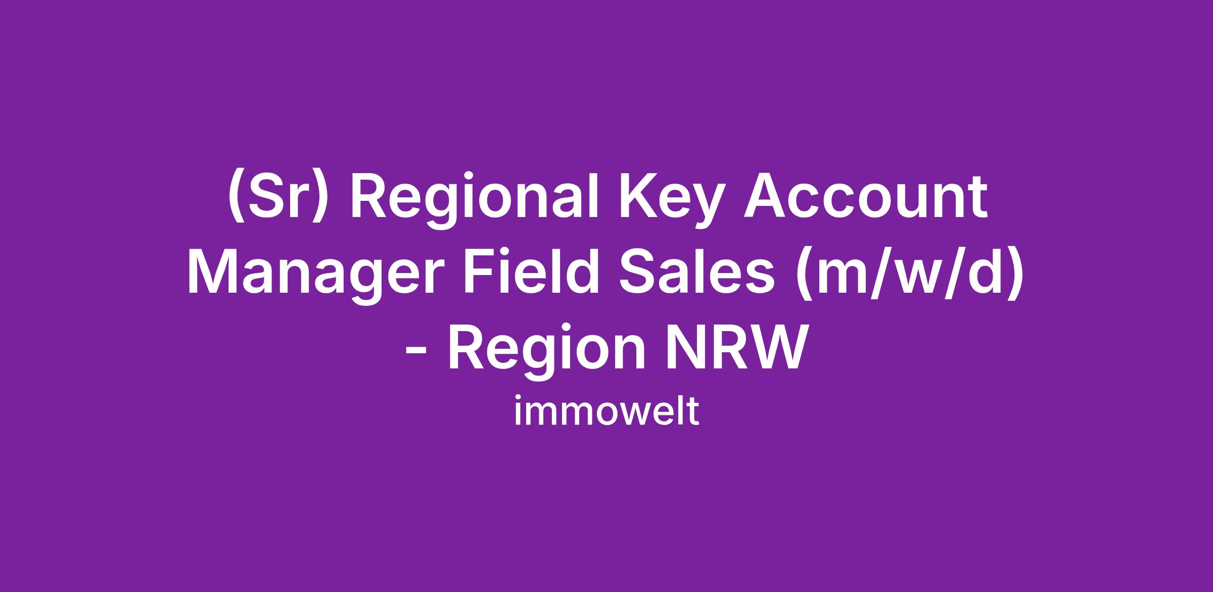 (Sr) Regional Key Account Manager Field Sales (m/w/d) - Region NRW