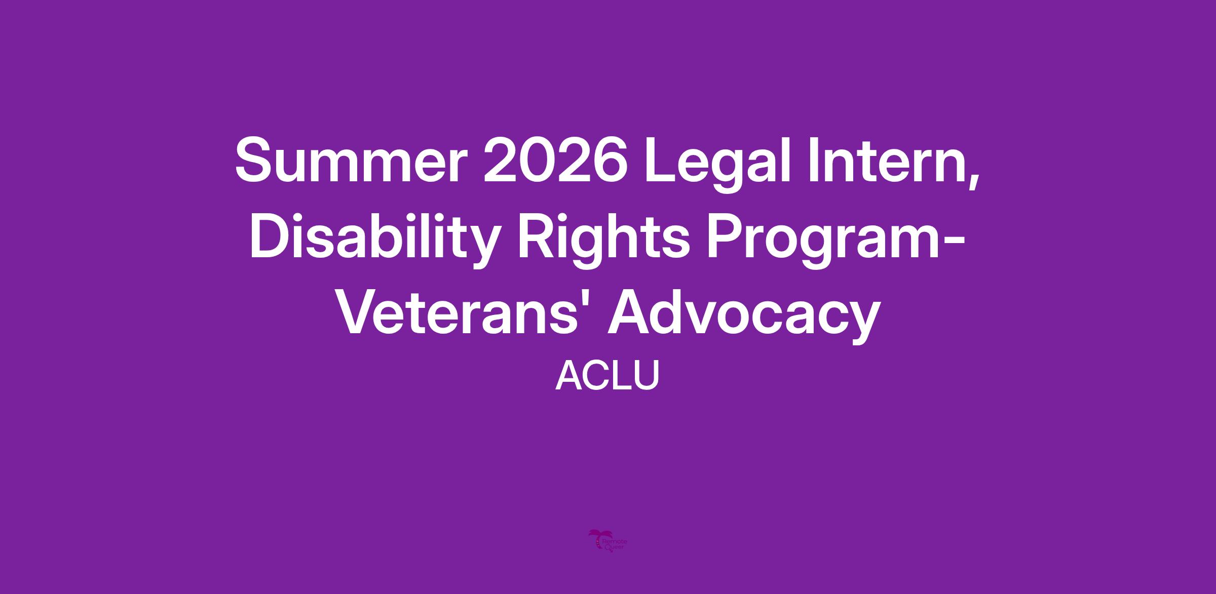 The ACLU seeks a Summer Legal Intern in the Disability Rights Program, Veterans' Advocacy of the ACLU’s National office in Washington D.C. or San Francisco, CA. This position can be remote or hybrid.