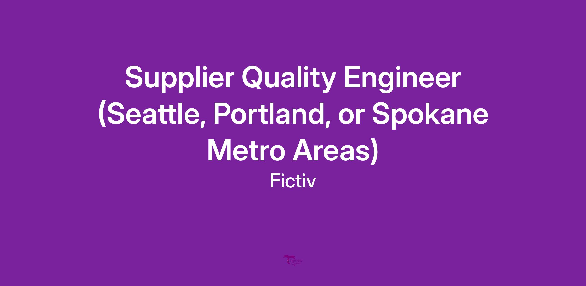 Supplier Quality Engineer – Pacific Northwest (Remote, Local Travel)