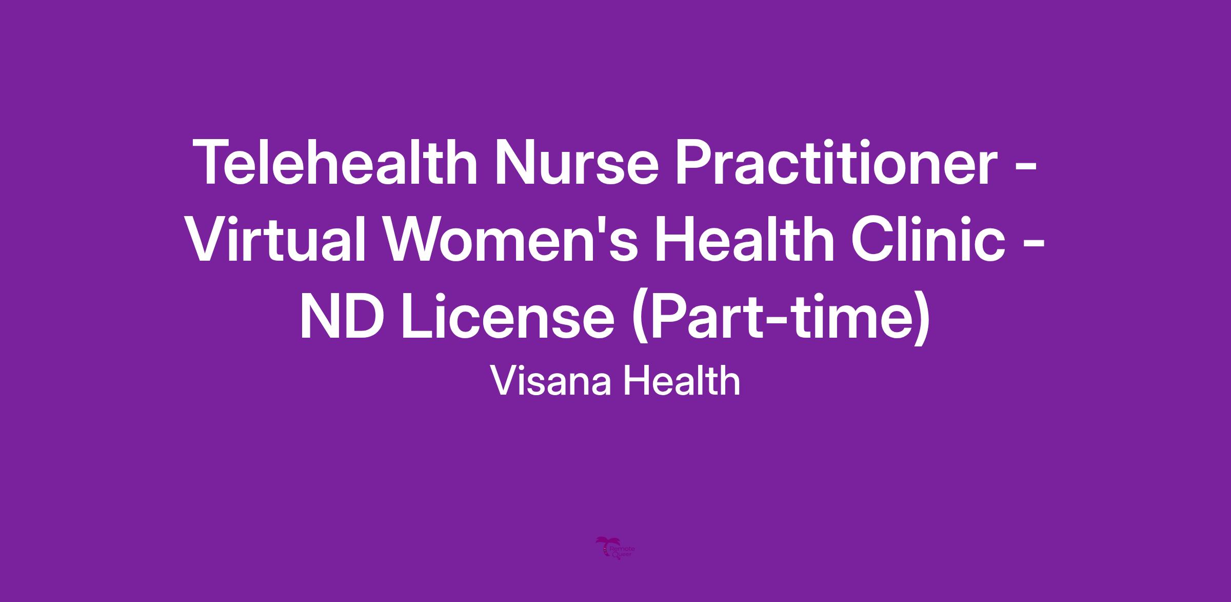 Telehealth Nurse Practitioner - Virtual Women's Health Clinic - ND License (Part-time)