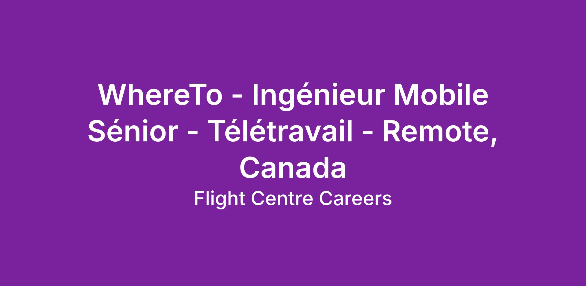 WhereTo est une entreprise de voyages d’affaires de San Francisco qui a évoluée en un studio de développement et de conception agile au sein de la famille Flight Centre. Nous construisons des solutions de voyage utilisées par certaines des plus grandes entreprises de la planète - nous n’avons qu’un seul objectif : rendre les voyages d’affaires meilleurs pour tout le monde.